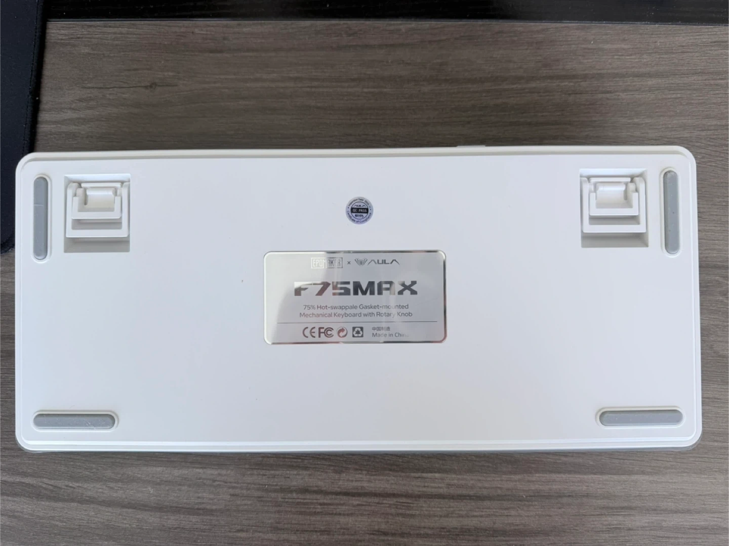 This is the AULA F75MPX 75% hot-swappable mechanical keyboard. It's a gasket-mounted keyboard with a rotary knob. It offers USB, Bluetooth, and 2.4G wired connectivity options.