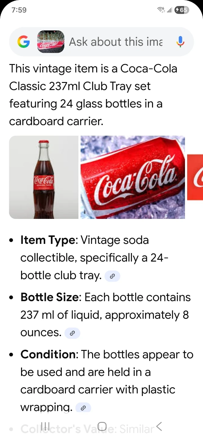 Buy & SellCoca-Cola Classic empty green 237ml bottles.Coca-Cola Classic empty green 237ml bottles.$5Each bottle is 237ml. 20 in the case. Green tinted bottles. See other ads for more vintage Coca-Cola items ConditionLike newWHERE TO MEETCheck LocationView MapSELLERverifiedalexIslington26120 reviews1 chats·0 favorites·23 viewsSEND CHAT TO SELLERHi alex! I’m interested in your listing.Hi alex! I’m interested in your listing.Get the Karrot app to chatSign In to chat