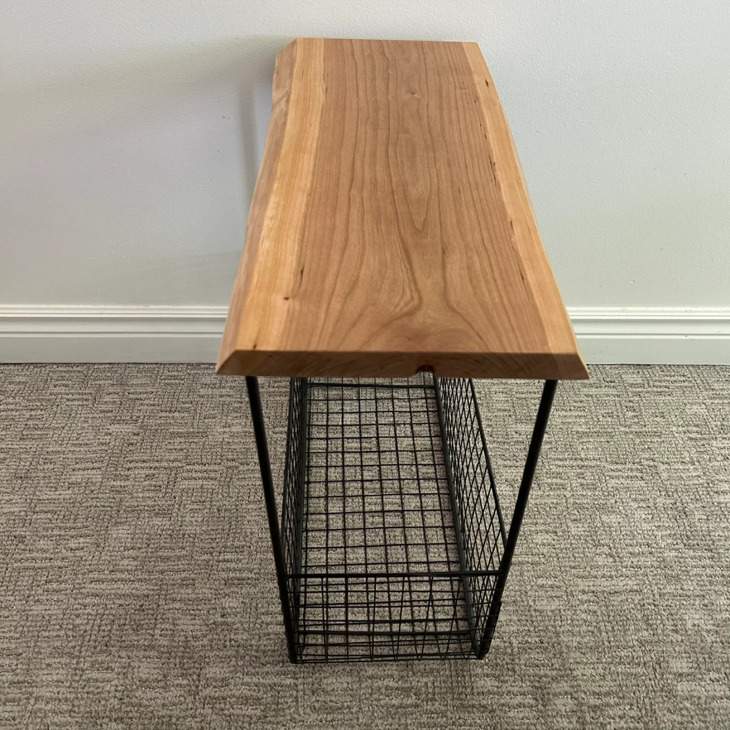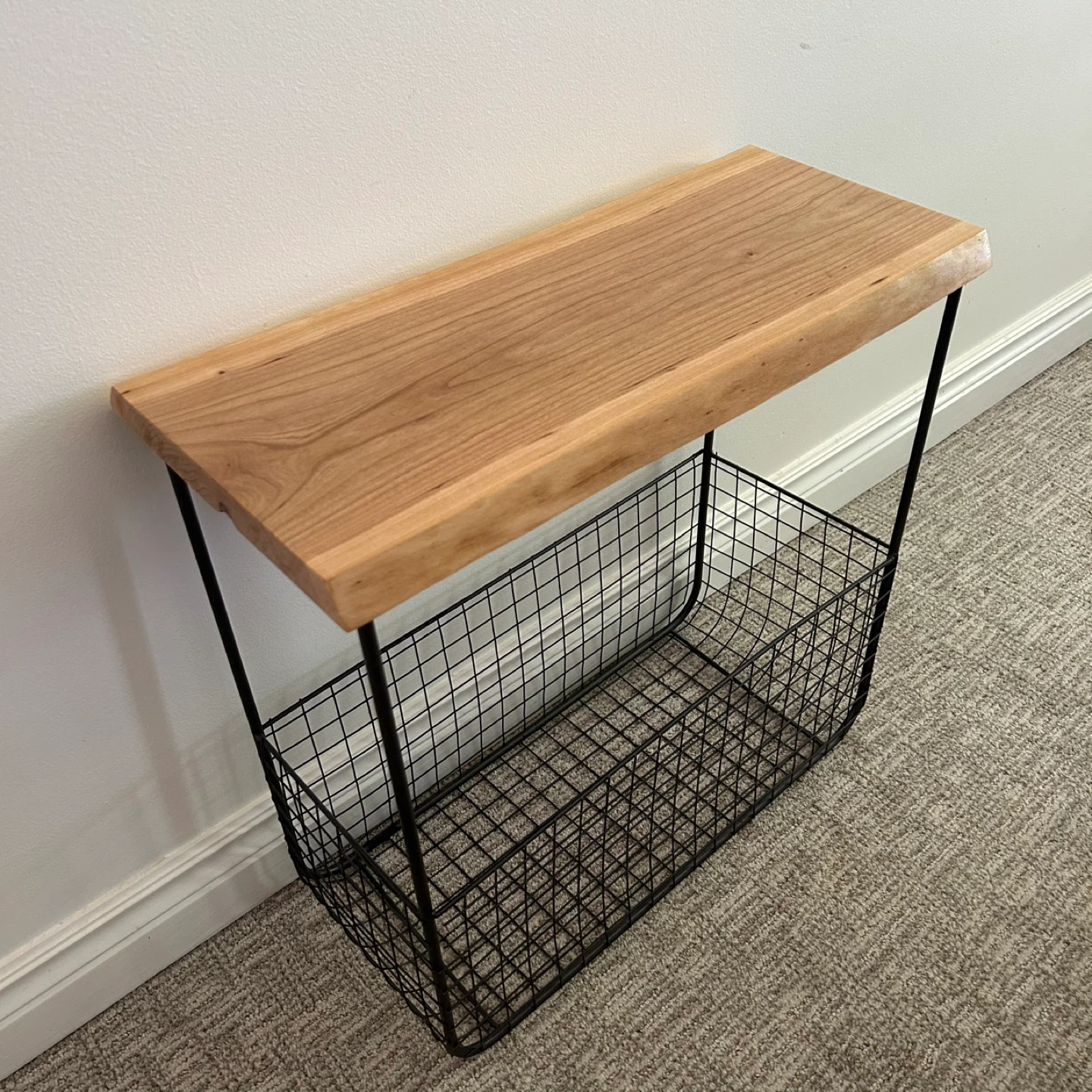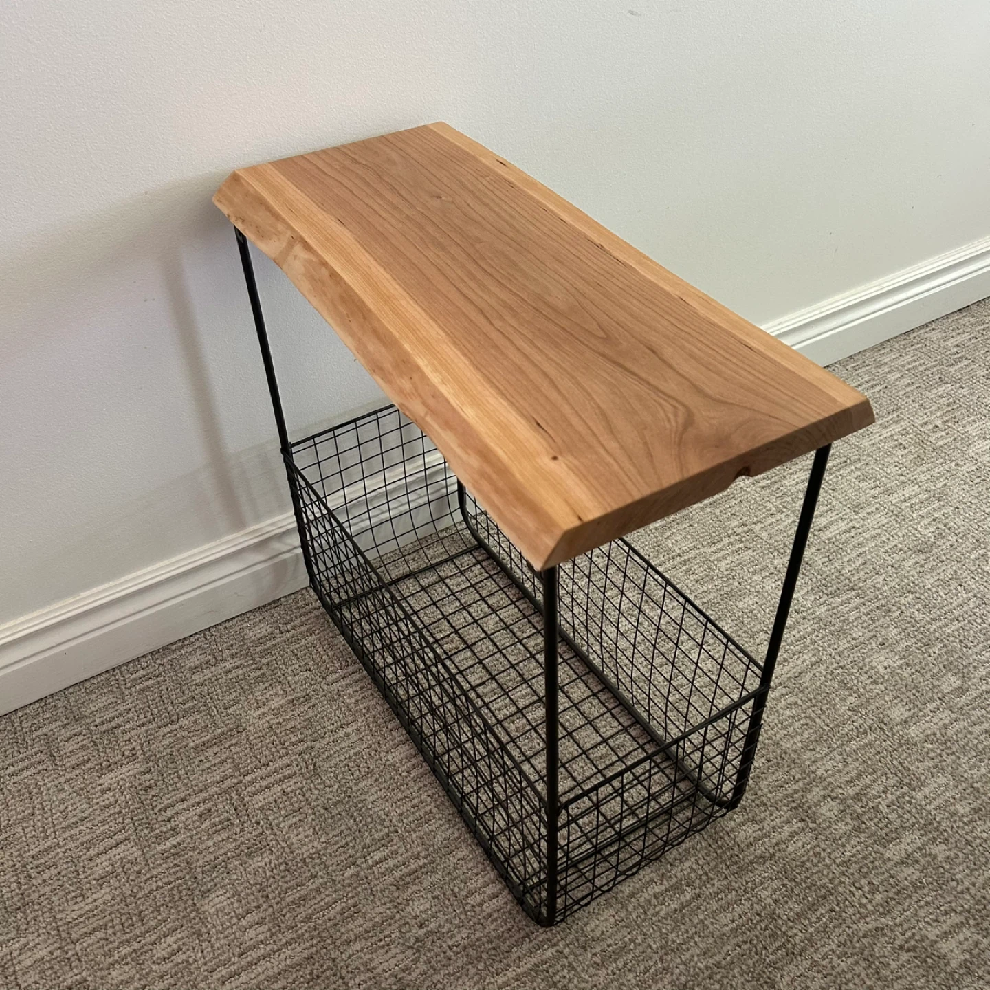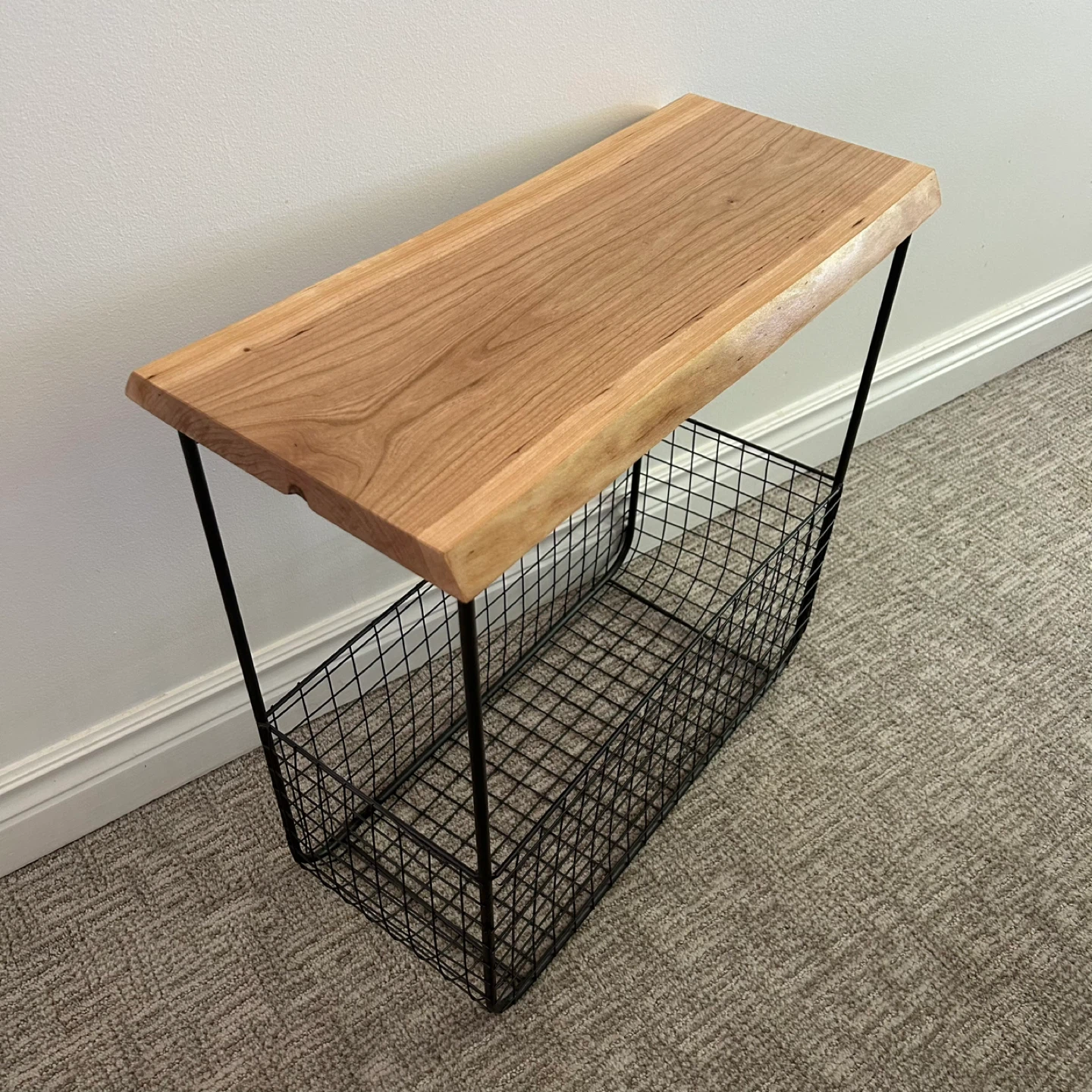 Wire Basket Side Table With Live Edge Top