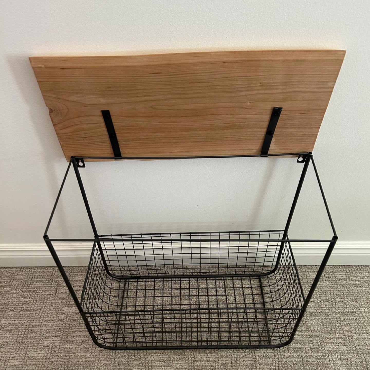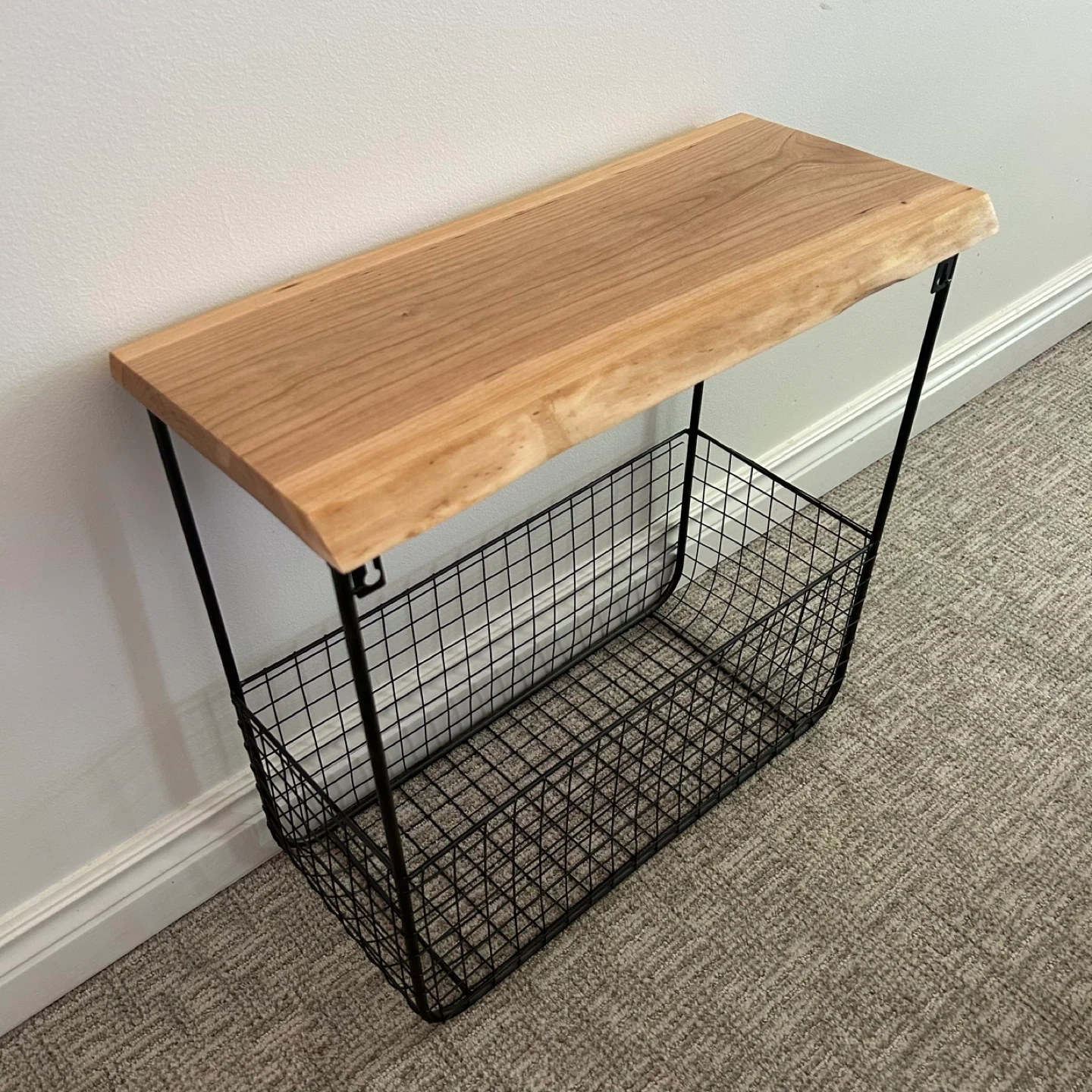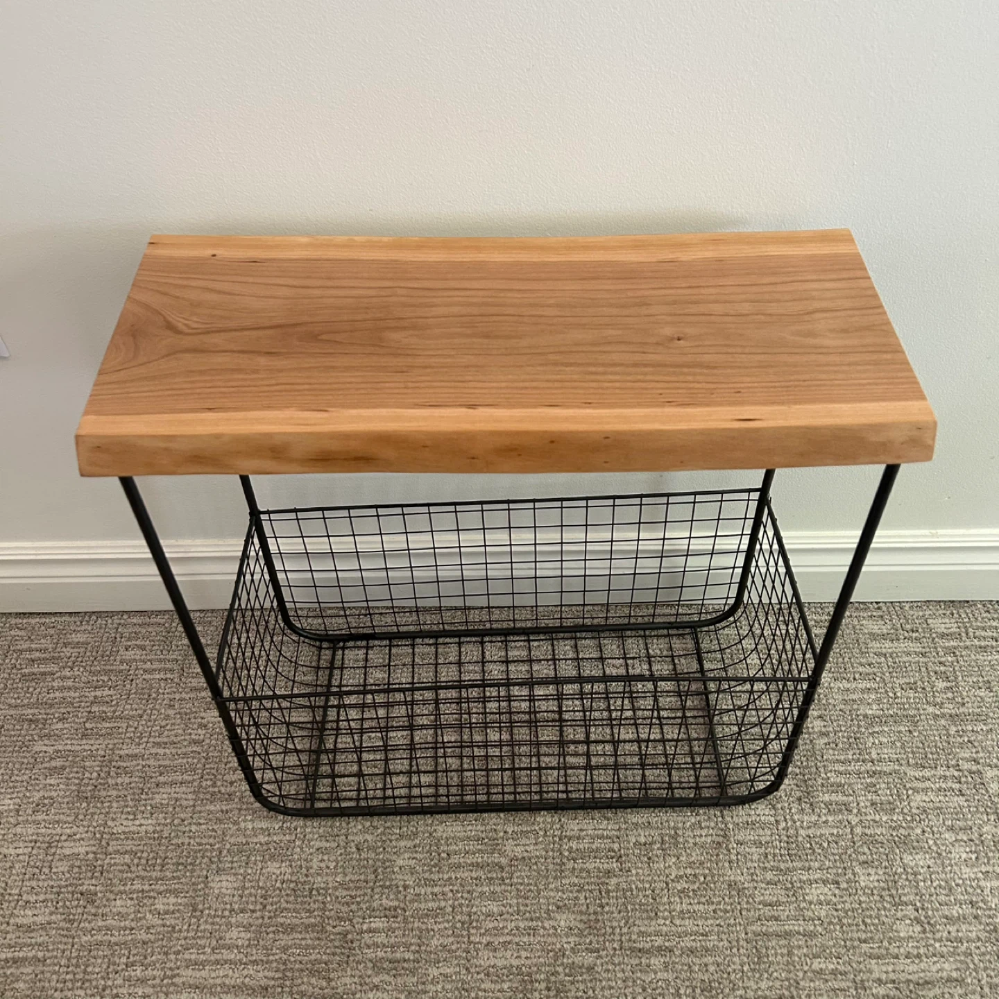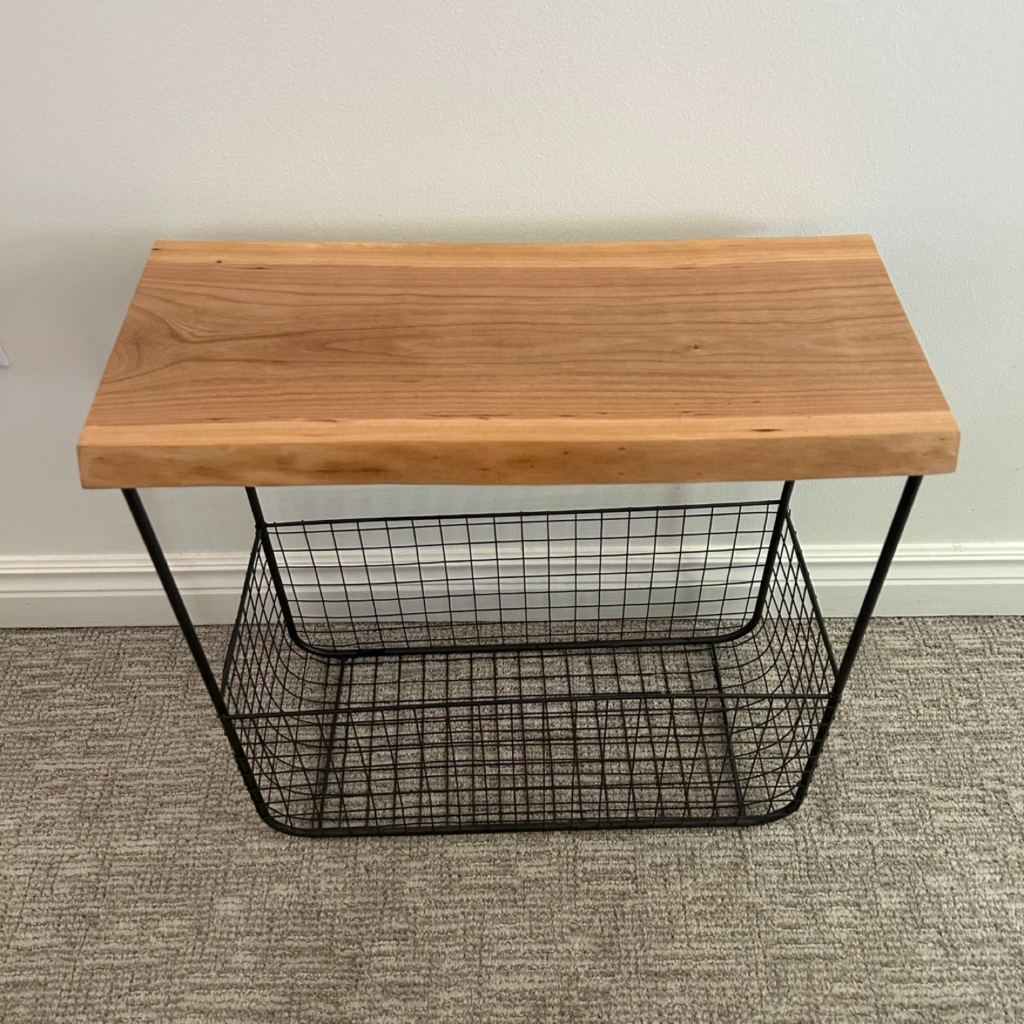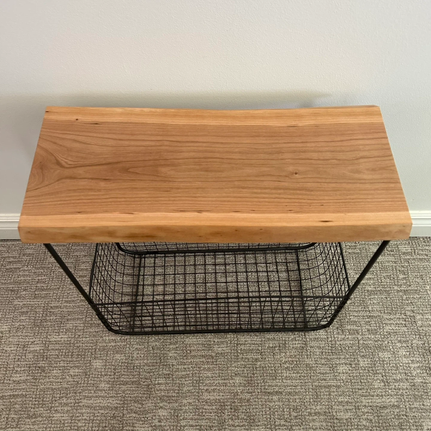 Wire Basket Side Table With Live Edge Top