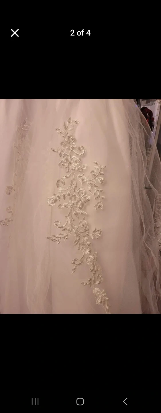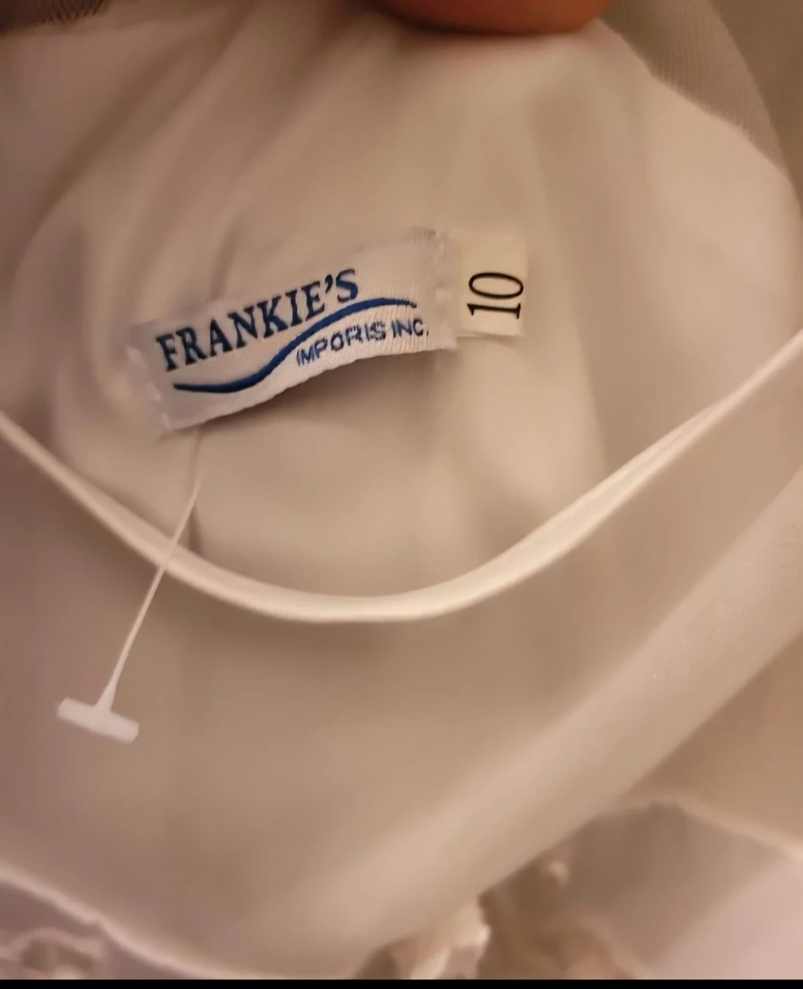 Used for communion .White tulle dress with floral embroidery. Features a round neckline and sleeveless design. Size 10. Perfect for special occasions!