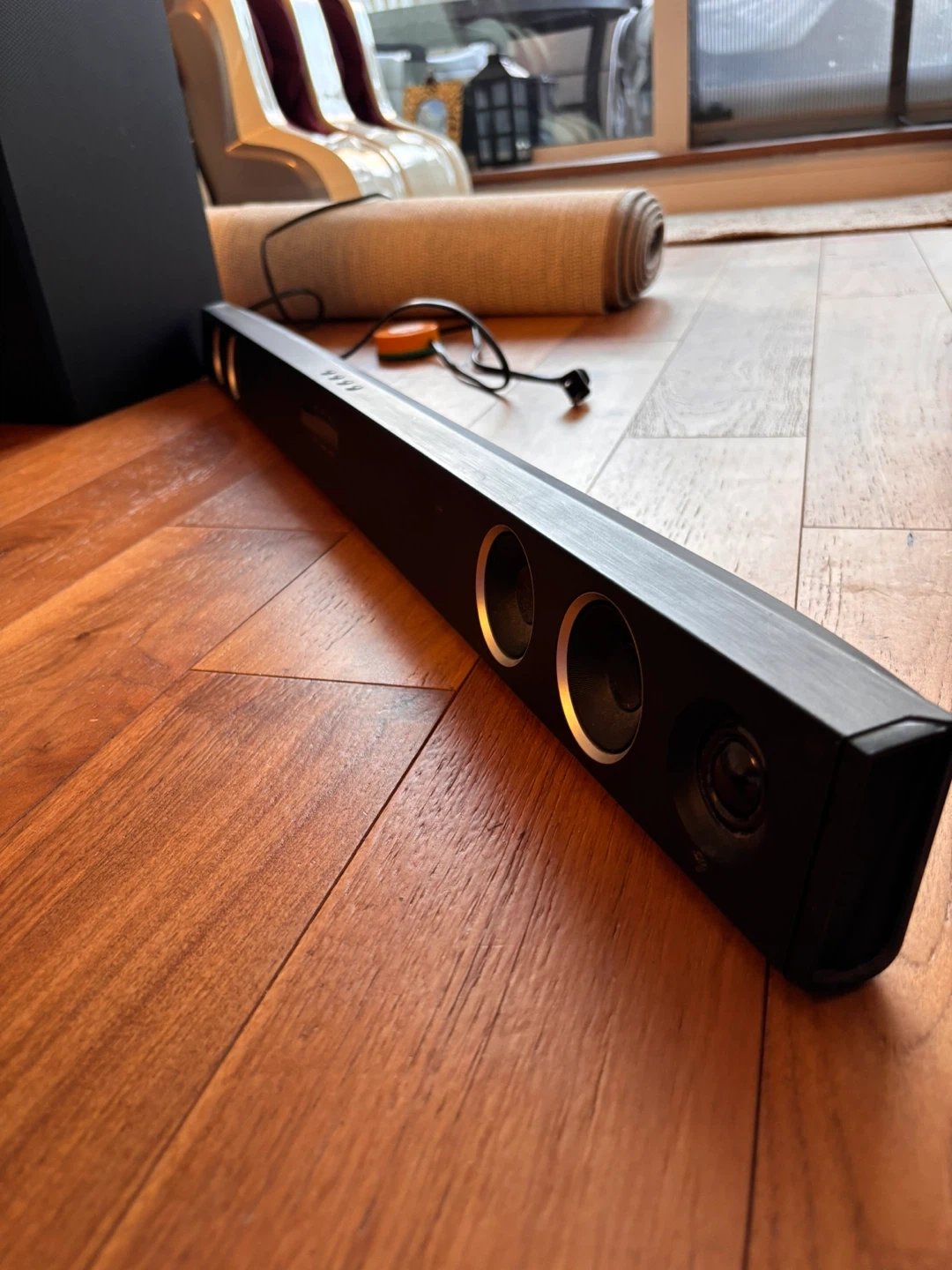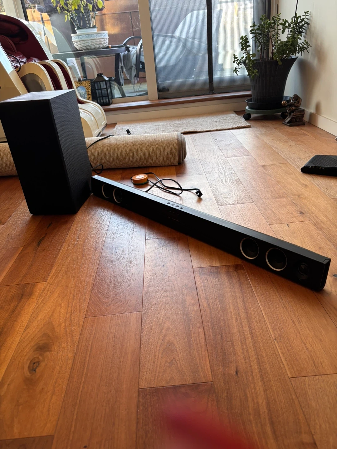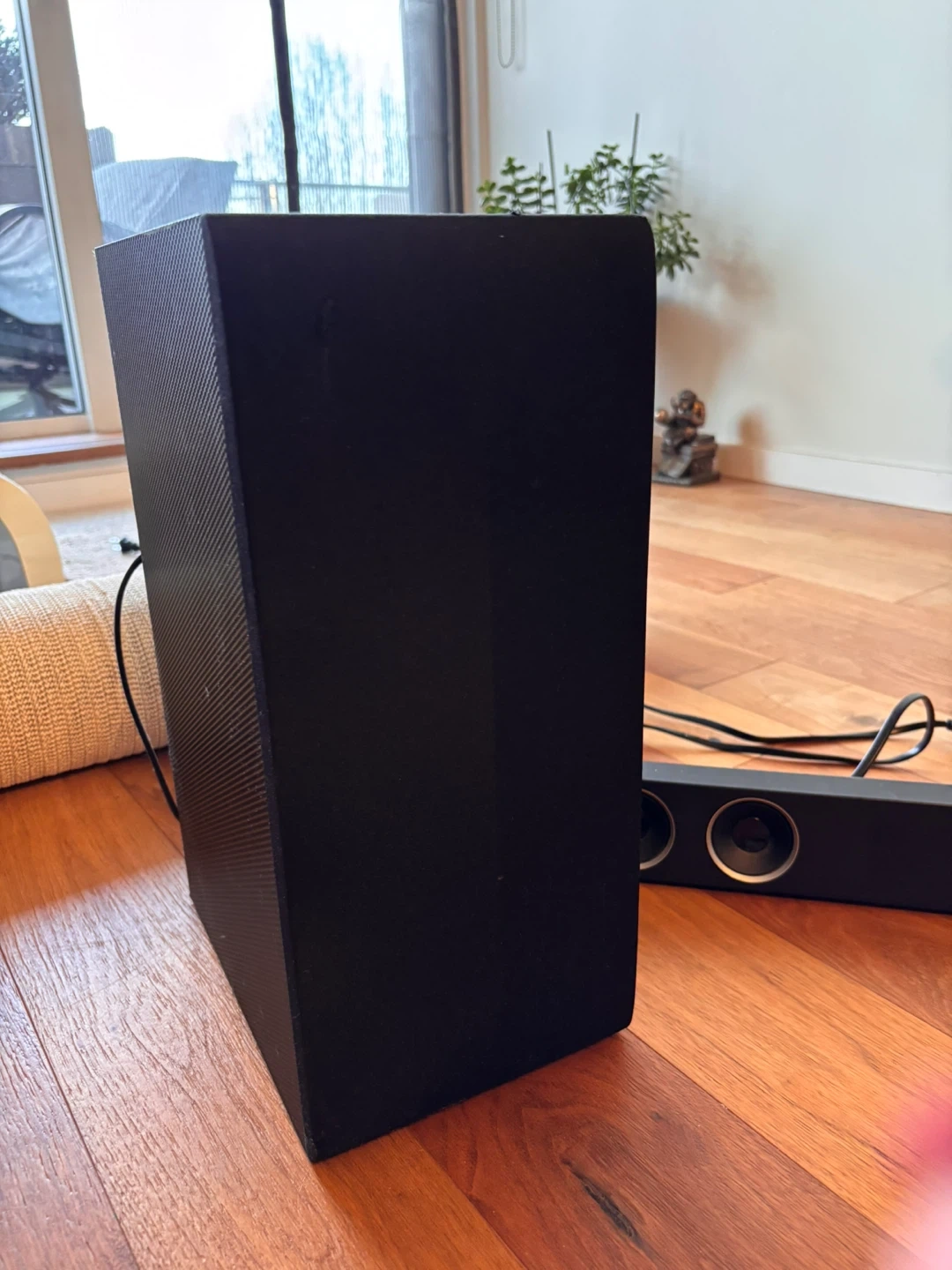 This is a LG black soundbar and subwoofer system. It's designed to enhance your audio experience. Both components are black. Want to upgrade so sell them here.