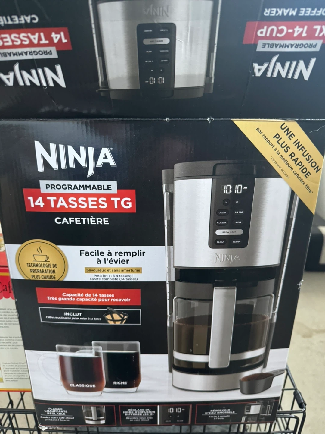 This Ninja coffee maker brews up to 14 cups with a programmable delay brew. It features a reusable filter and adjustable warming plate. Enjoy your coffee quick or slow with Classic and Rich brew options!