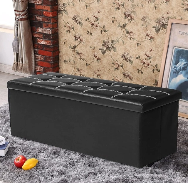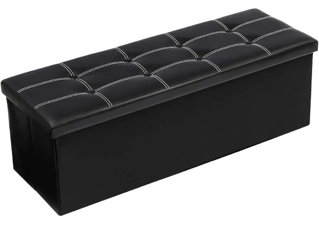 New 43" Folding Storage Ottoman Bench - Black Leather