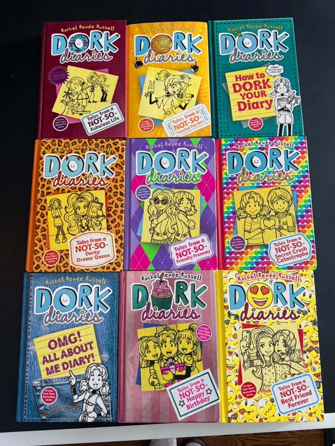 Selling a set of Dork Diaries books by Rachel Renee Russell! This series is perfect for pre teen readers. The books are in great shape and ready for a new home library.