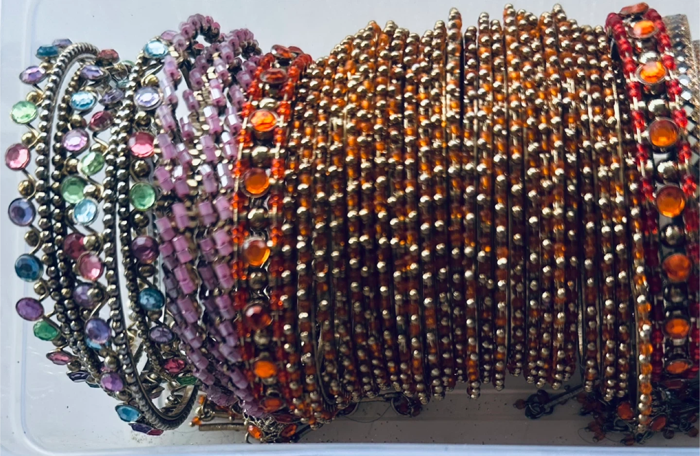 Selling a collection of colourful bangles! These bangles come in a variety of colours and designs. They are perfect for adding a touch of sparkle to any outfit! This is moving out sale so pls hurry V do have just 1 week