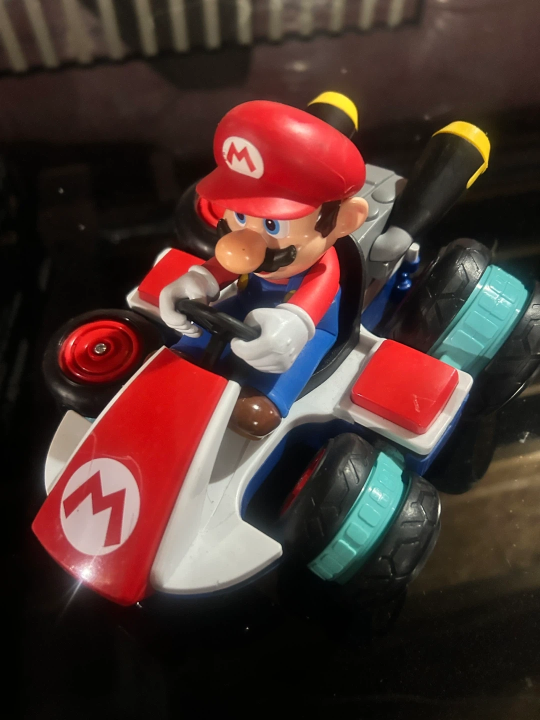 Selling a Mario Kart racer with remote control! It's in great shape and ready for some fun races. Perfect for kids and fans of the Mario Kart series