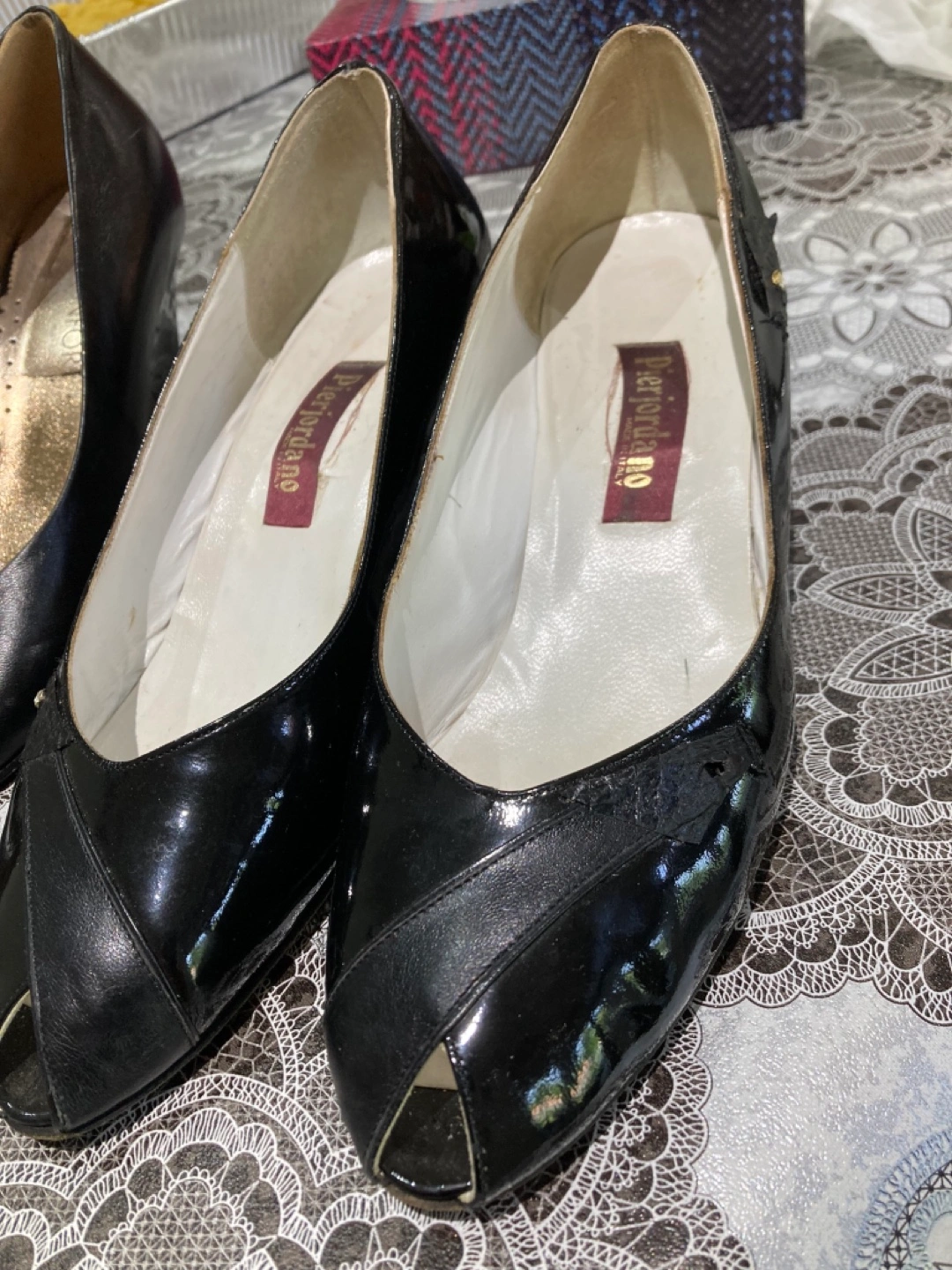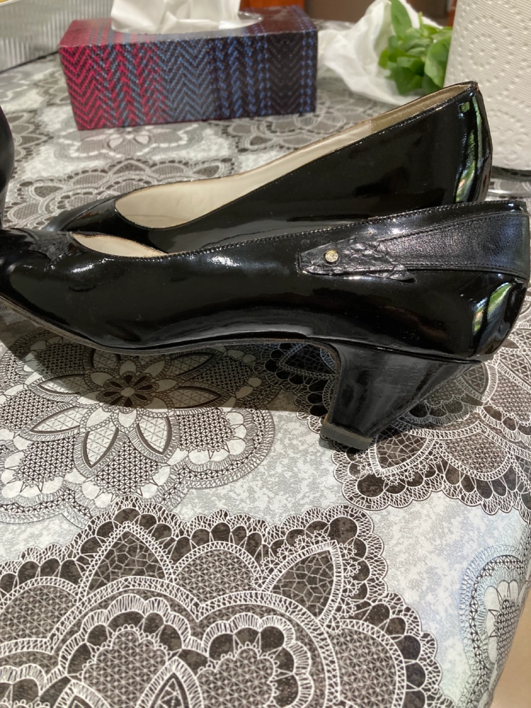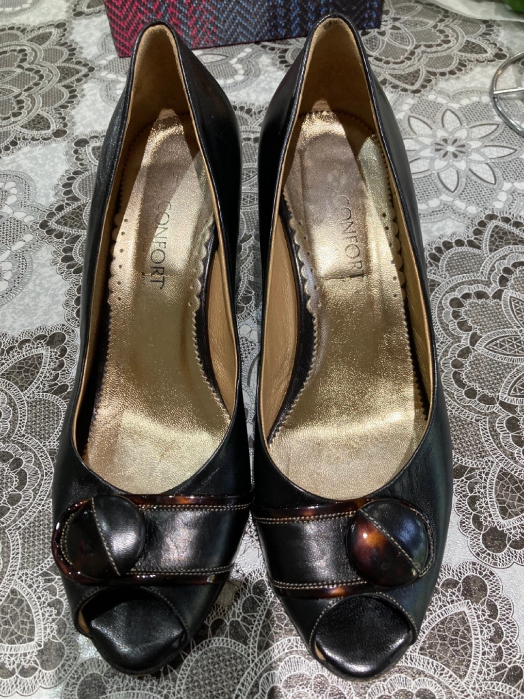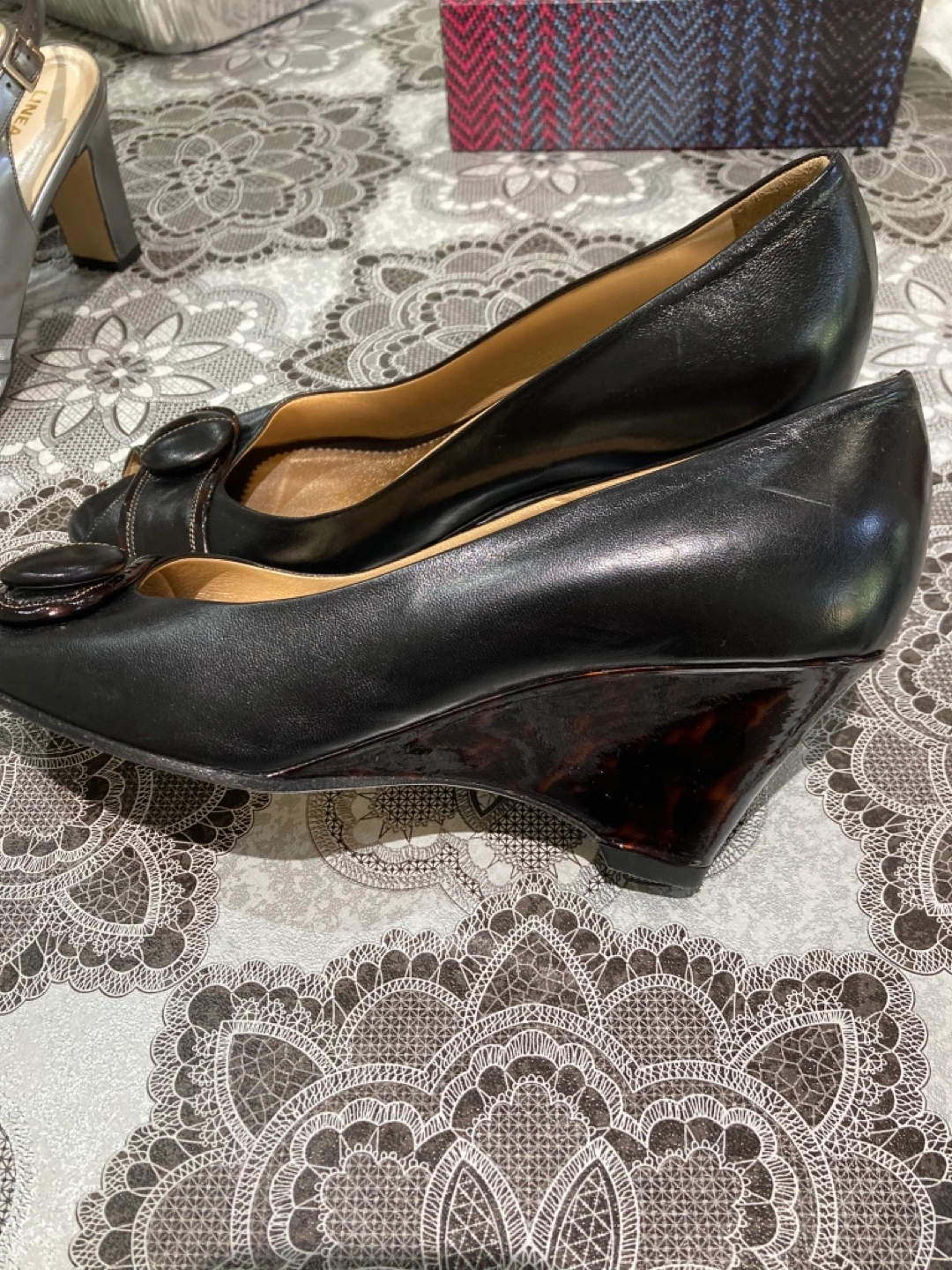Elegant black leather slingback heels. Features a unique mesh design. Made in Italy. Size 40. And matching purse ๐ $10 each