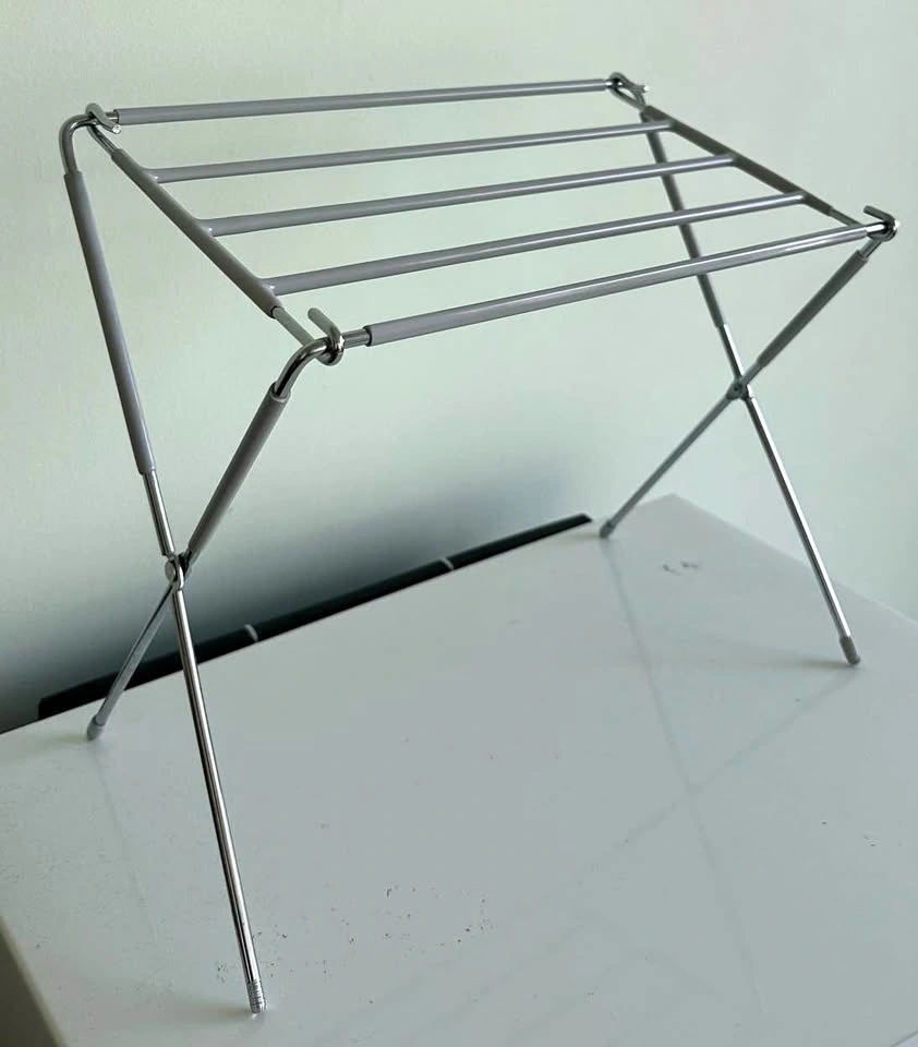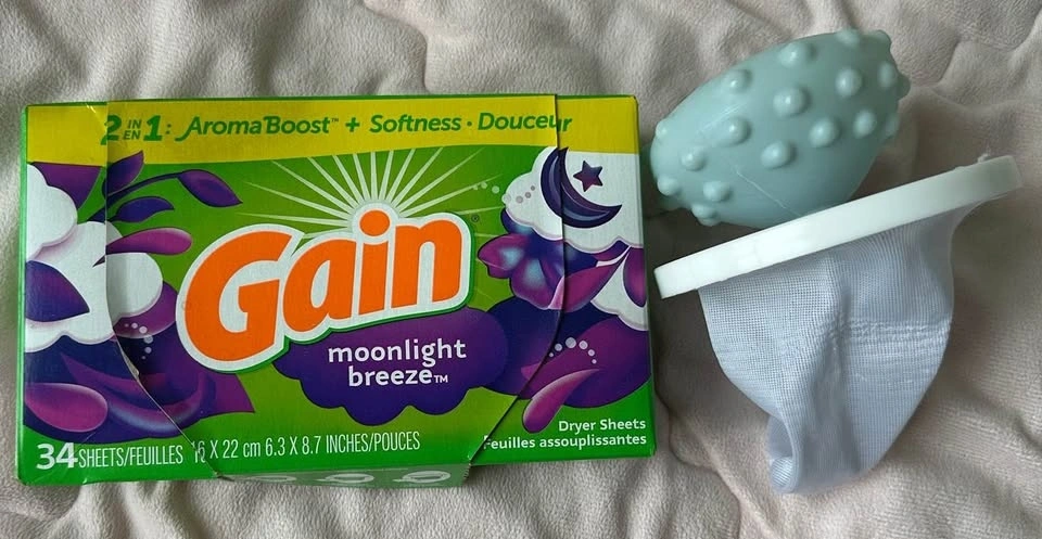 Very good condition mini metal foldable drying rack. Foot shampoo (from Korea) is almost full. Gain dryer sheets, only used 3-4 sheets. Dryer ball is clean.