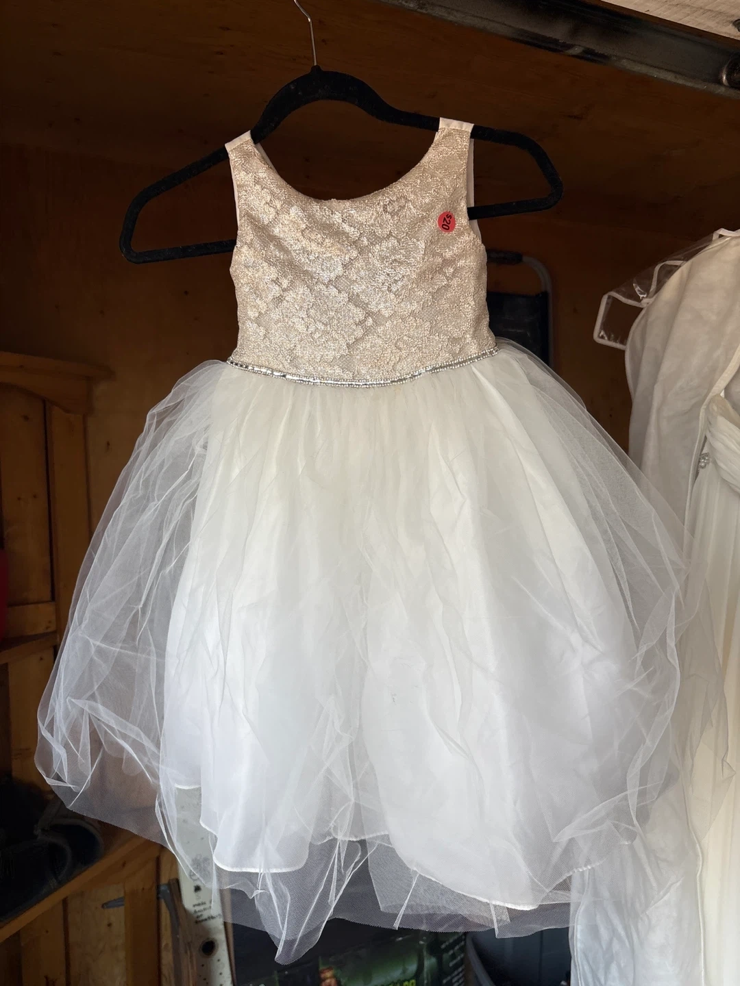A beautiful dress from Sophia Young Design Limited in a size 4! The dress features a lovely lace bodice and a tulle skirt. Perfect for a special occasion!