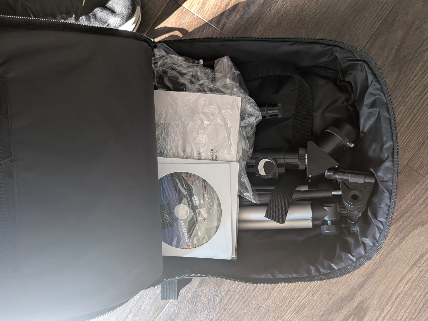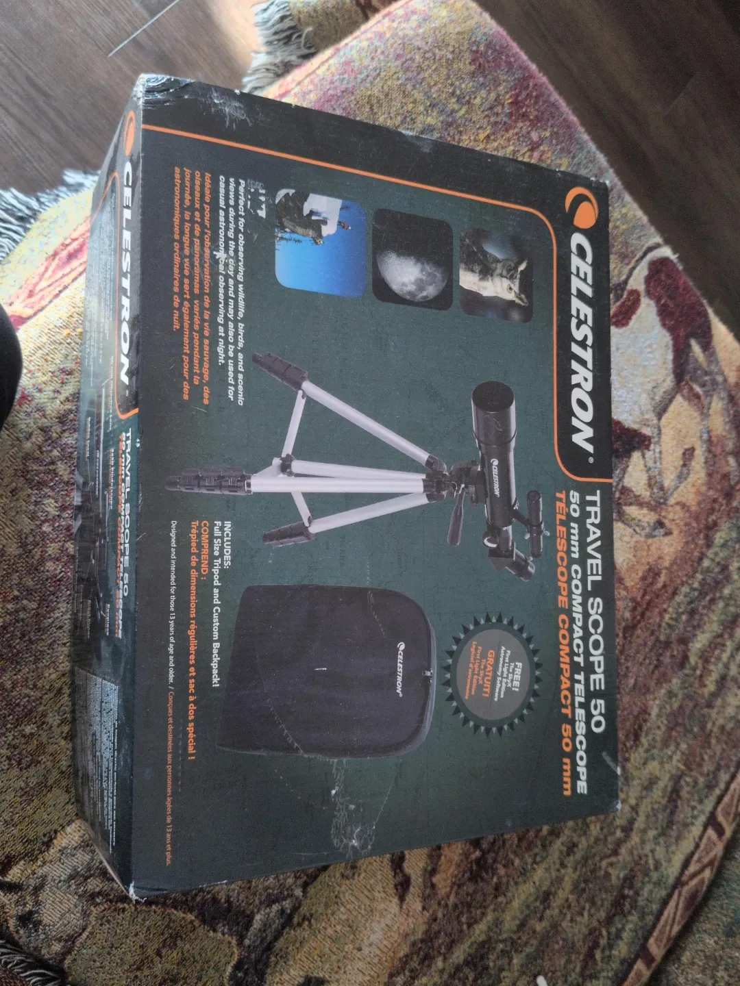 This Celestron Travel Scope 50 is a compact telescope perfect for observing wildlife, birds, and celestial objects at night. It includes a full-size tripod and a custom backpack for easy transport. A CD with First Light Edition software is also included.