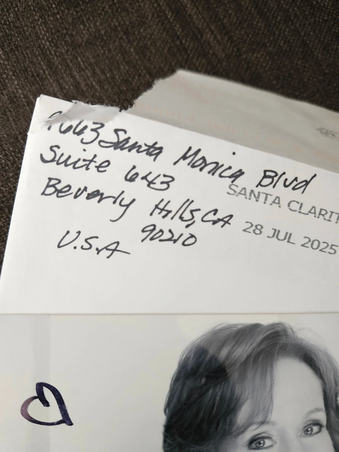 Obtained via mail from her Beverly Hills office.
