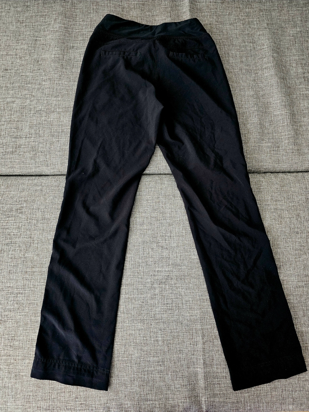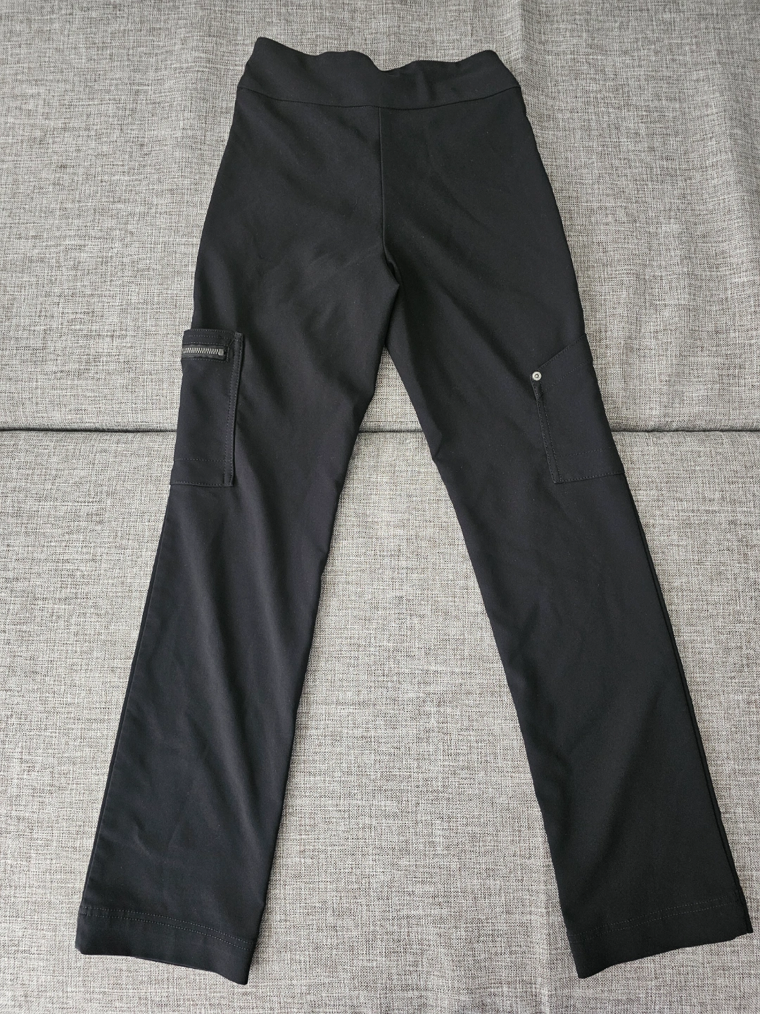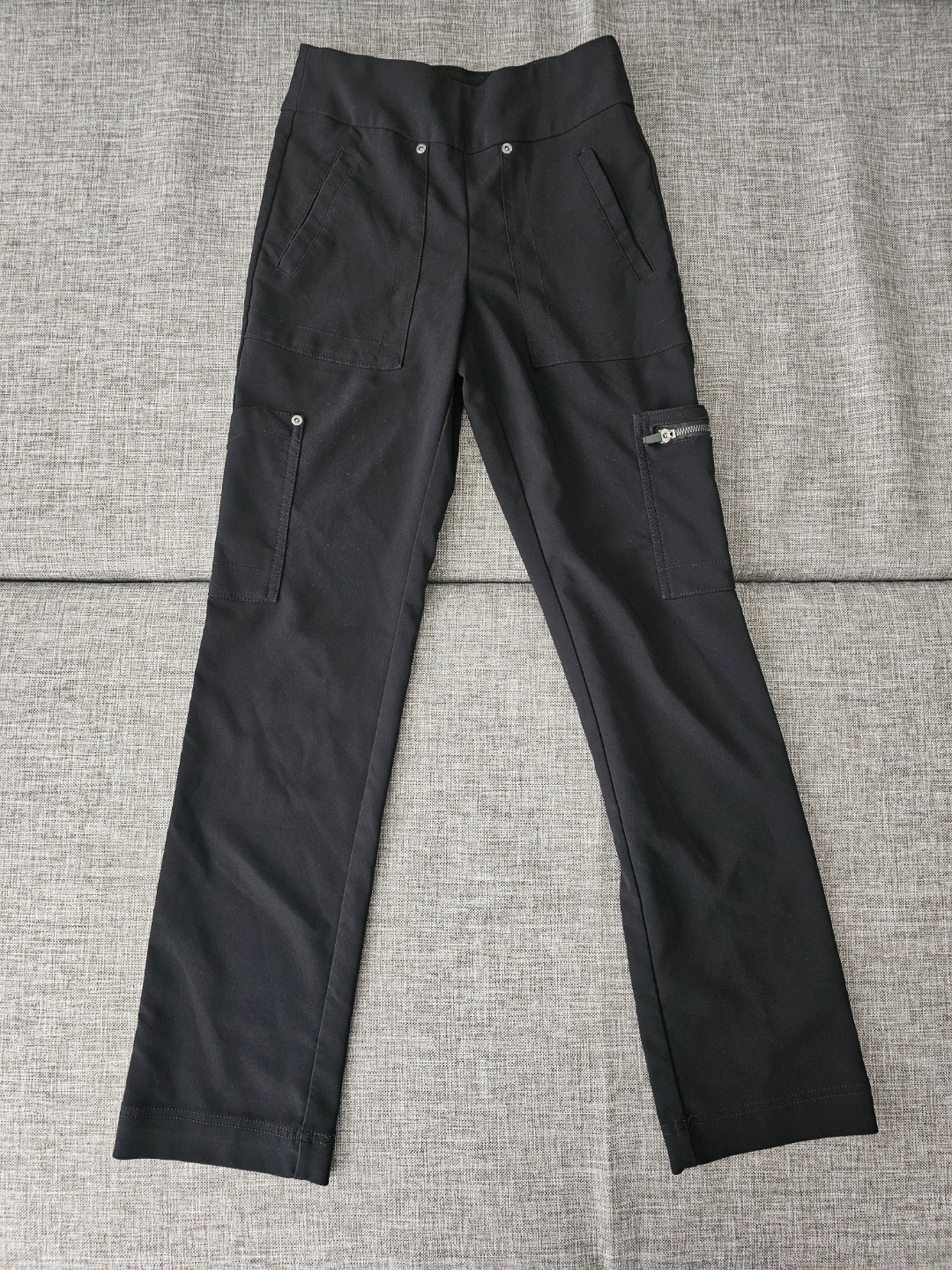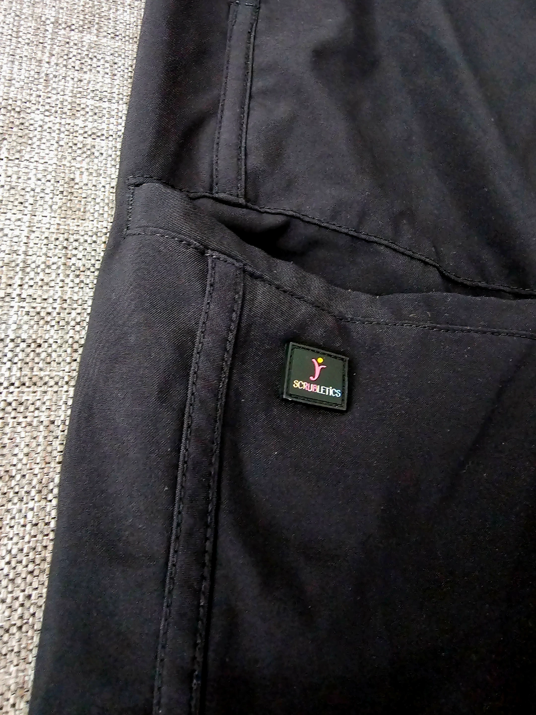 Good deal! You are getting two black scrub pants. One is straight leg cargo style (XS) and the other has a slight flare at the end (S). Inner tie waistband. Excellent condition.