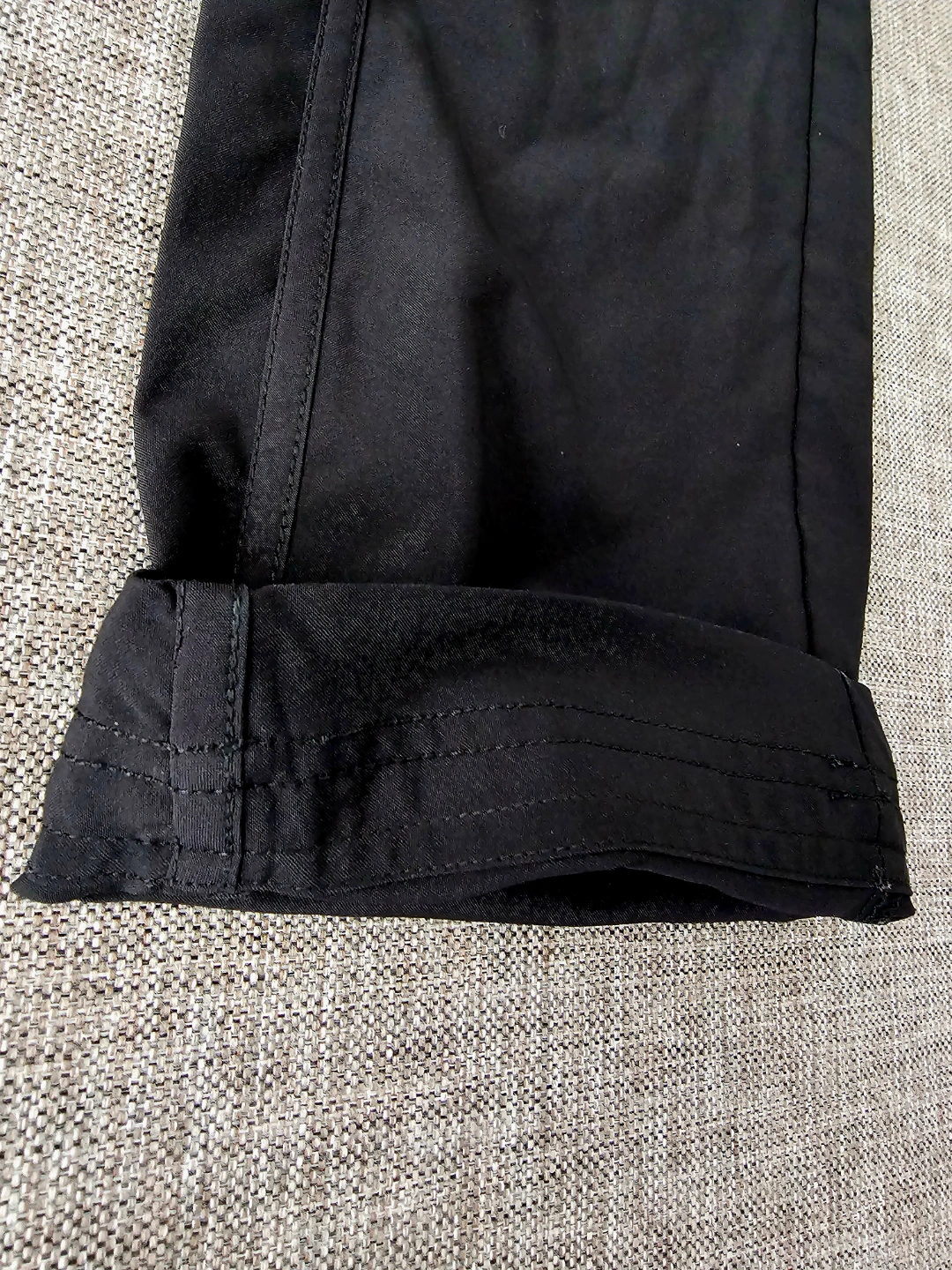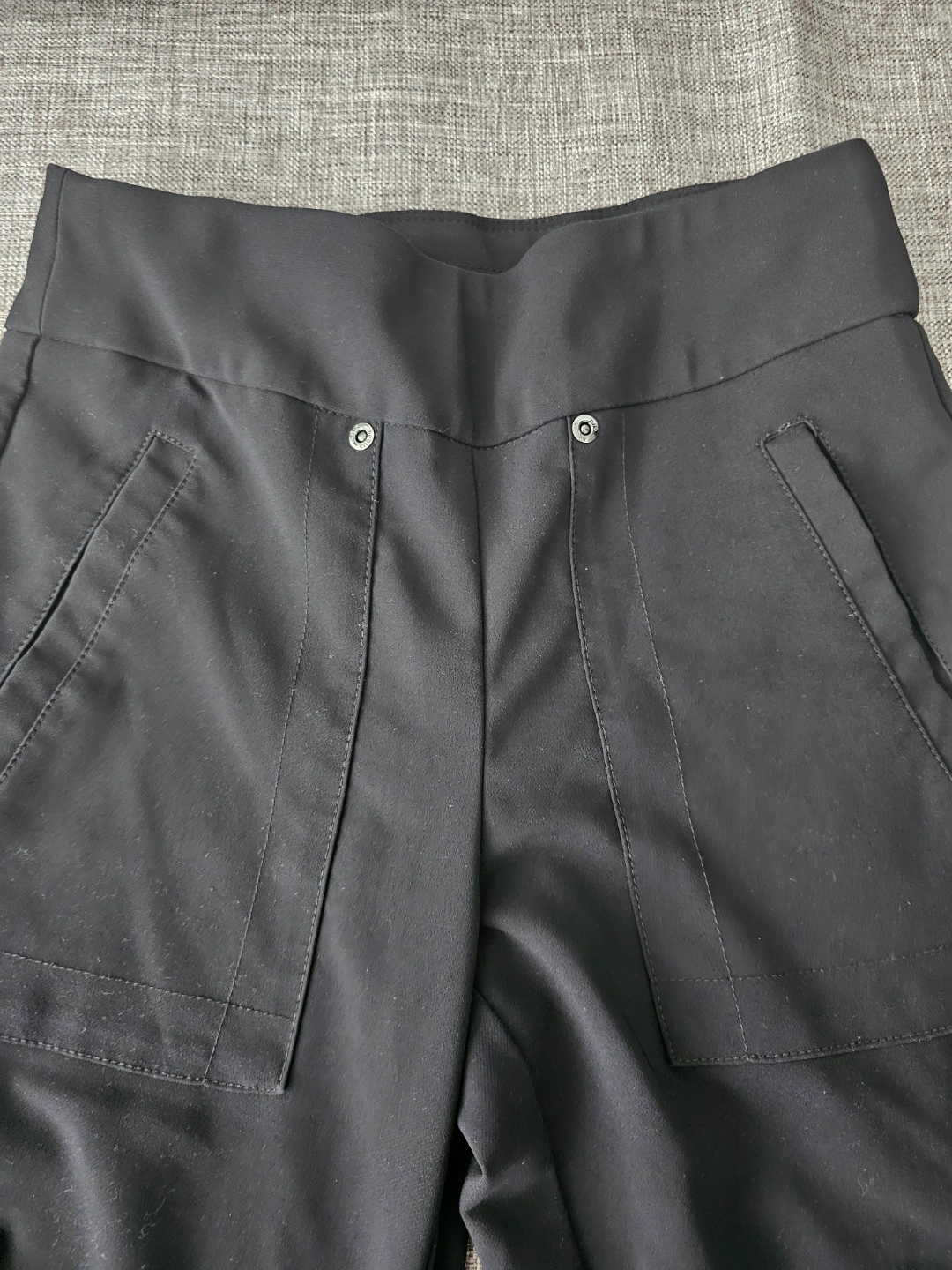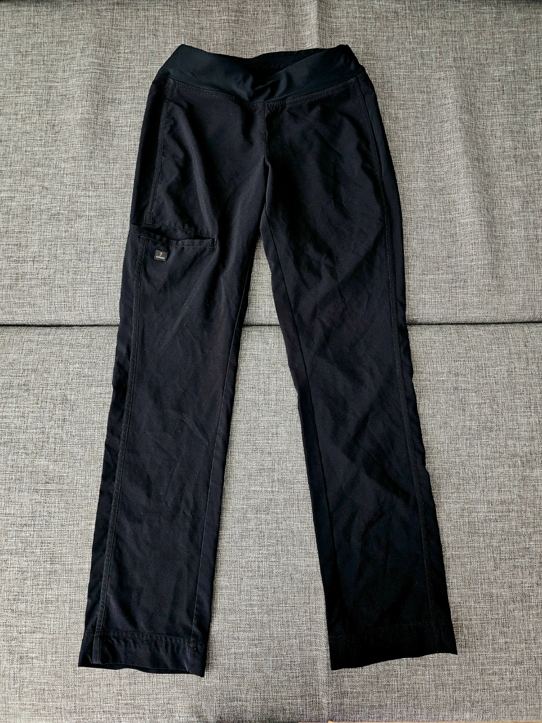Good deal! You are getting two black scrub pants. One is straight leg cargo style (XS) and the other has a slight flare at the end (S). Inner tie waistband. Excellent condition.
