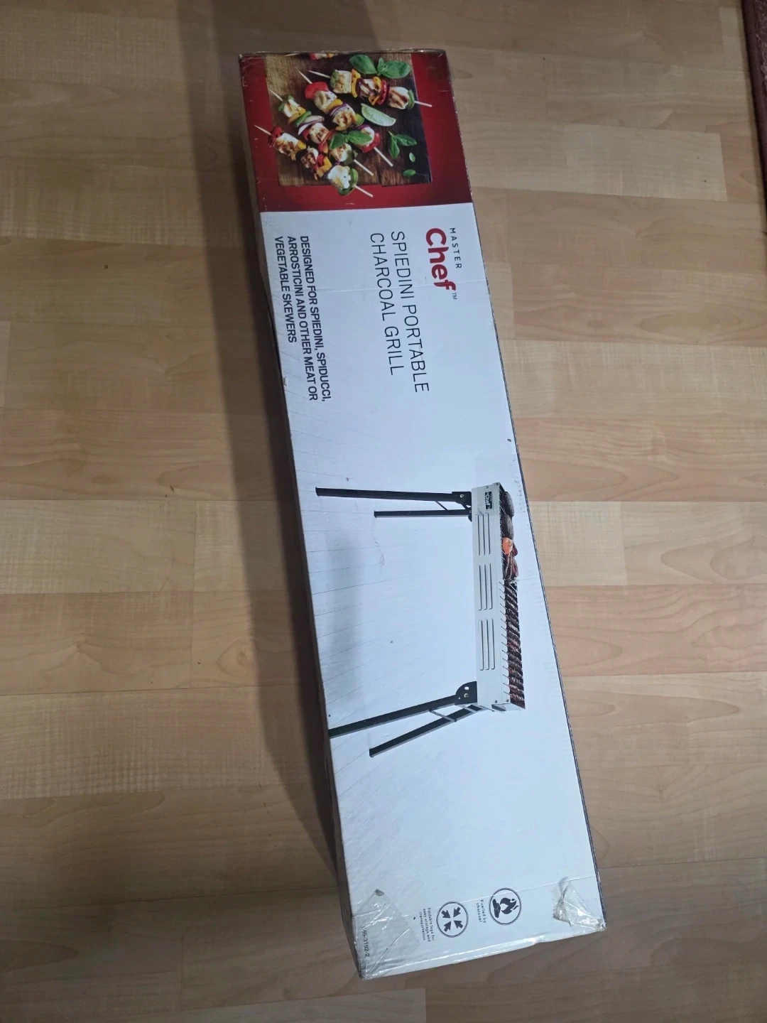 This Master Chef portable charcoal grill is designed for spiedini, spiducci, arrosticini, and other meat or vegetable skewers. It features foldable legs for easy storage and transportation. Perfect for outdoor gatherings and picnics!
