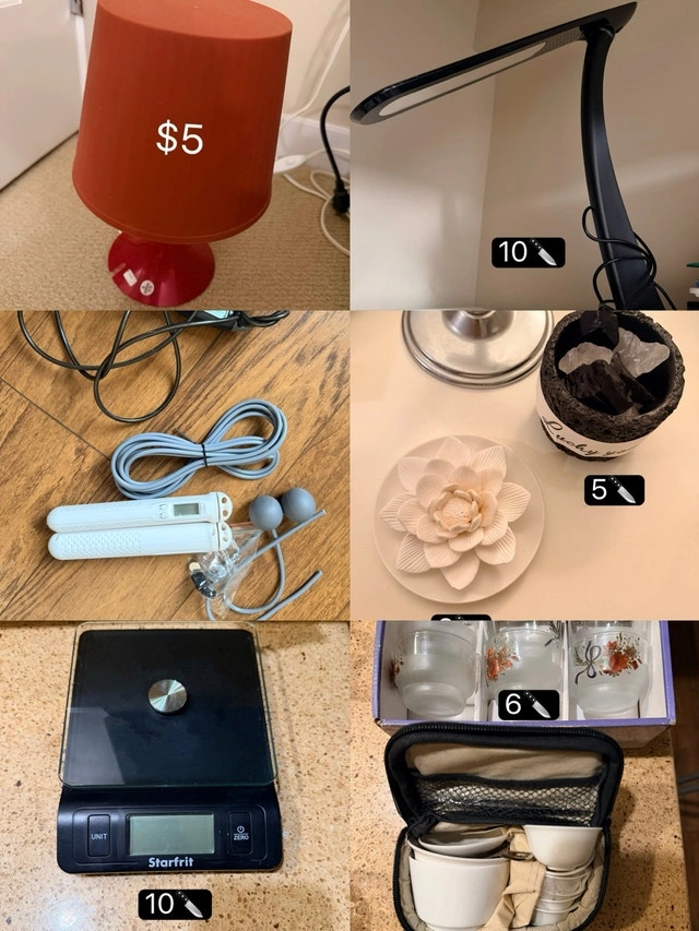 Buy & SellVarious Small StuffVarious Small Stuff$5Lamps, hand soap and cream, jumping ropes - $5 each. Food weighing scale, fragrance stones, cups. Pickup in RMD.WHERE TO MEETCheck LocationView MapSELLERaliceLansdowne Centre200 reviews0 chats·0 favorites·14 viewsSEND CHAT TO SELLERHi alice! I’m interested in your listing.Hi alice! I’m interested in your listing.Get the Karrot app to chatSign In to chat