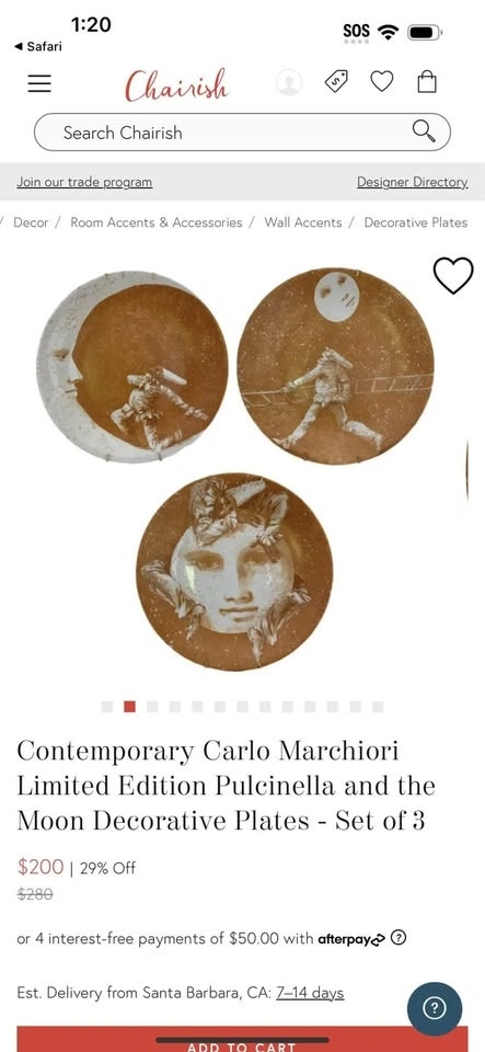 Buy & SellCarlo Marchiori Porcelain Plates 🧡Carlo Marchiori Porcelain Plates 🧡$50Carlo MARCHIORI Vintage Porcelain Plates. Limited Edition! Great Condition. $50 each plate (negotiable)ConditionLike newWHERE TO MEETCheck LocationView MapSELLERverifiedSilvanaAstoria21015 reviews0 chats·0 favorites·5 viewsSEND CHAT TO SELLERHi Silvana! I’m interested in your listing.Hi Silvana! I’m interested in your listing.Get the Karrot app to chatSign In to chat