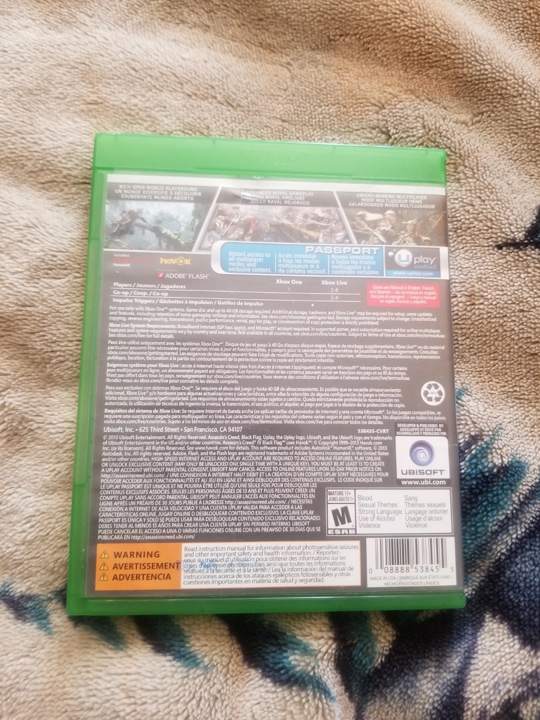 Assassin's Creed IV: Black Flag Special Edition for Xbox One. This action-adventure game is rated mature (17+). It's a great title for fans of pirate adventures and open-world exploration. Get ready to sail the high seas! Asking $10