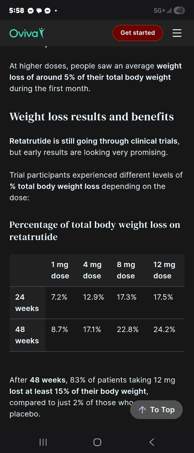 Retatrutide is an once-weekly "triple G" agonist (and Glucagon receptors) developed by Eli Lilly that has demonstrated significant weight loss (up to ~24% over 48 weeks) and improved metabolic markers. It is considered a potential next-generation obesity treatment that may surpass current medications in efficacy Mechanism of Action: By targeting three hormone receptors instead of one (like semaglutide) or two (like tirzepatide), it increases energy expenditure alongside appetite reduction. Research indicates substantial weight reductions, with some participants losing up to 24.2% of body weight after 48 weeks. have shown consistent weight loss and significant reductions in HbA1c in patients with type 2 diabetes.