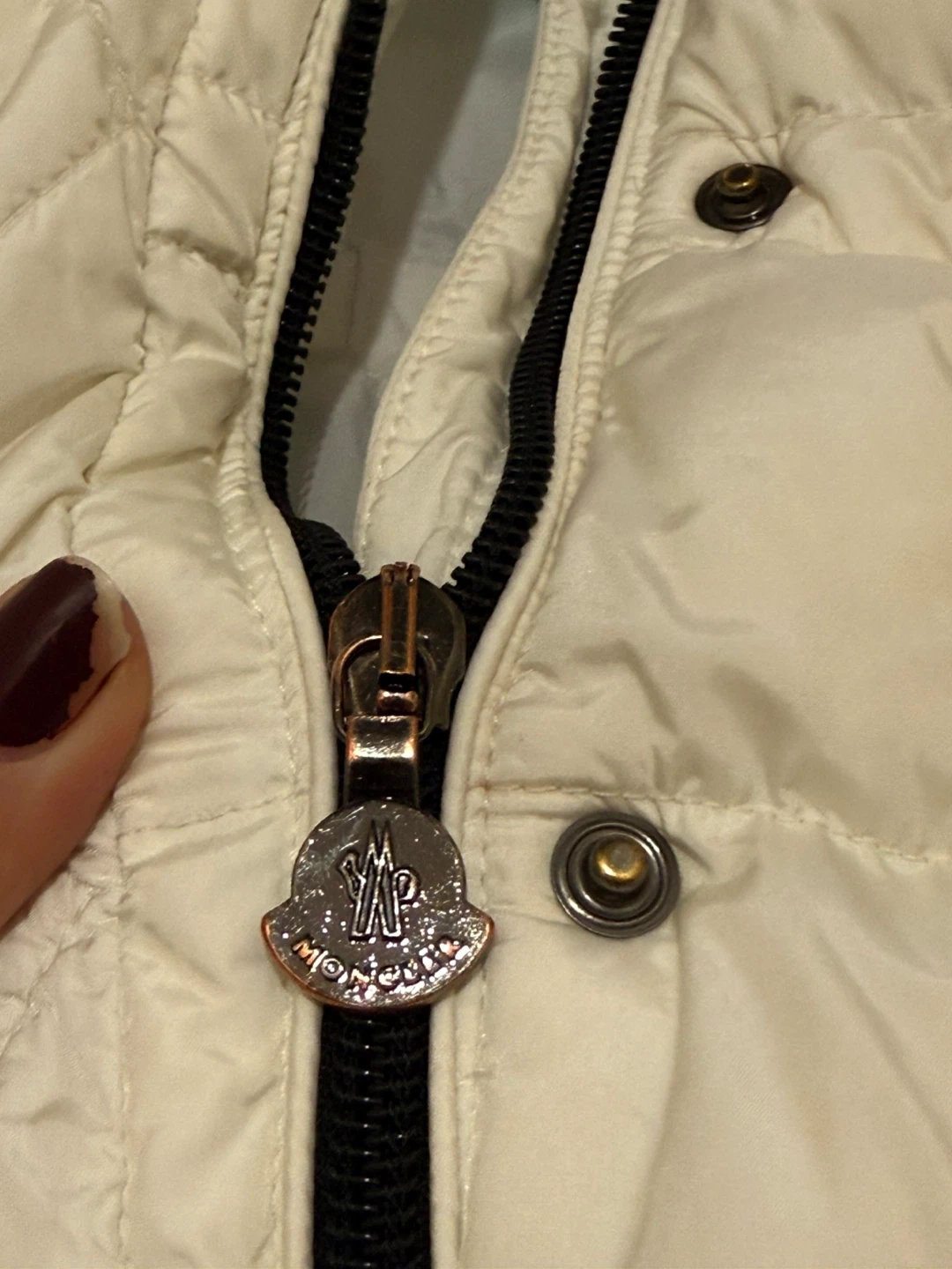 Some light staining throughout and the zipper gets a bit stuck at the bottom but is otherwise in great condition. Detachable hood