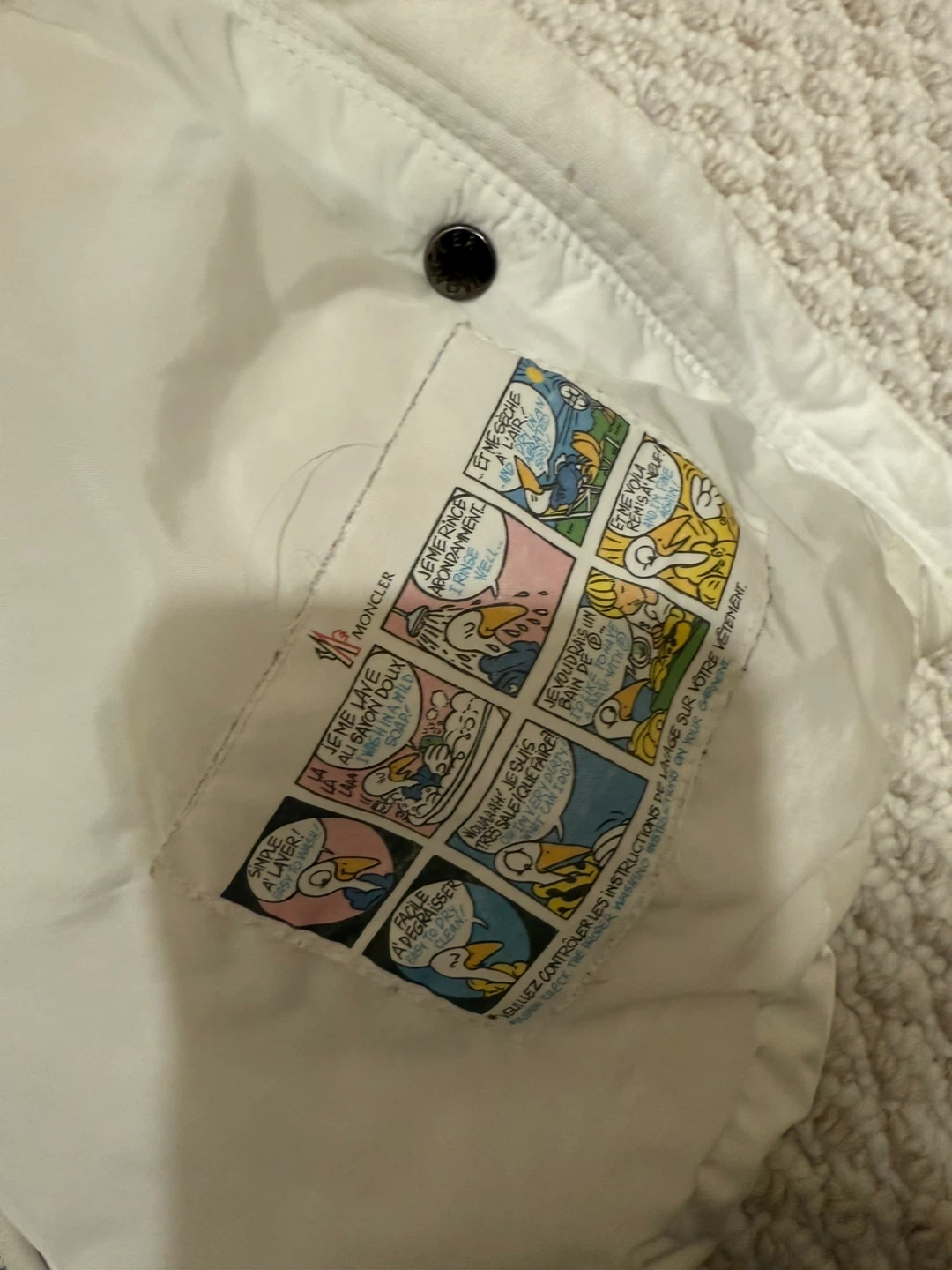 Some light staining throughout and the zipper gets a bit stuck at the bottom but is otherwise in great condition. Detachable hood