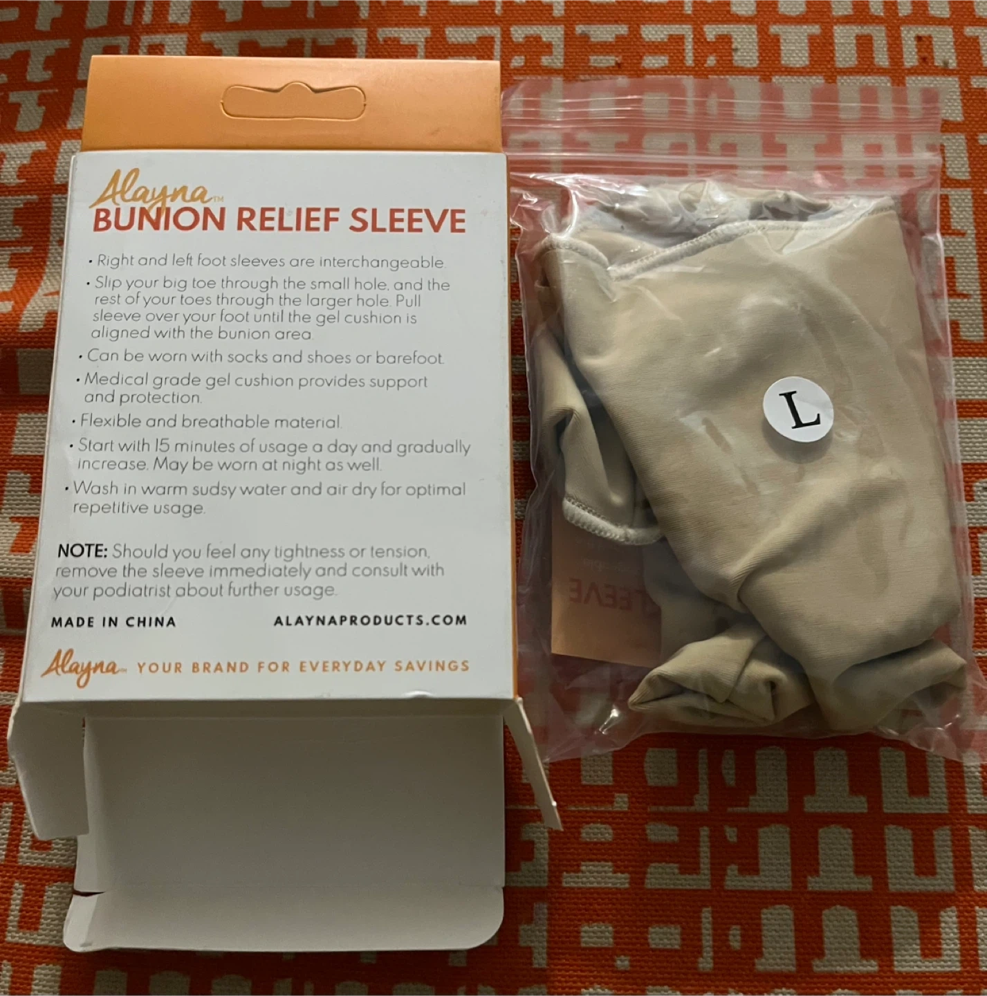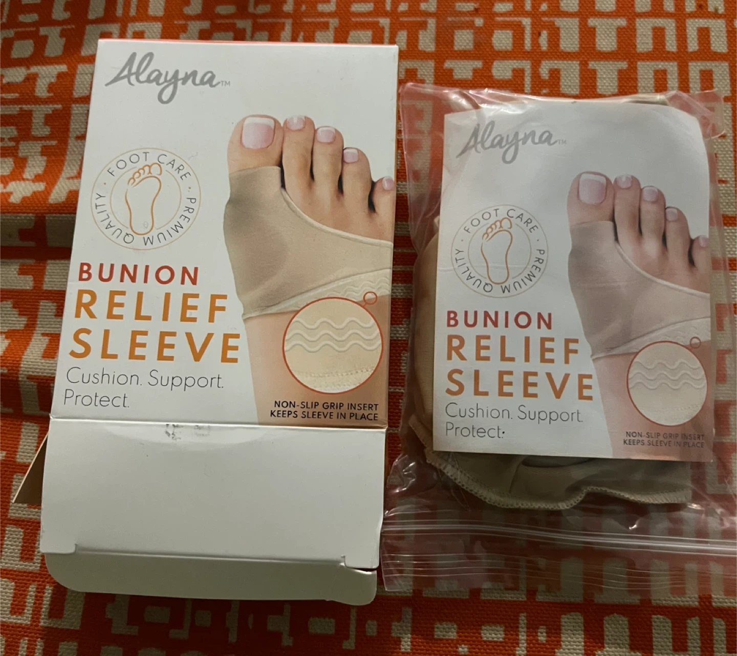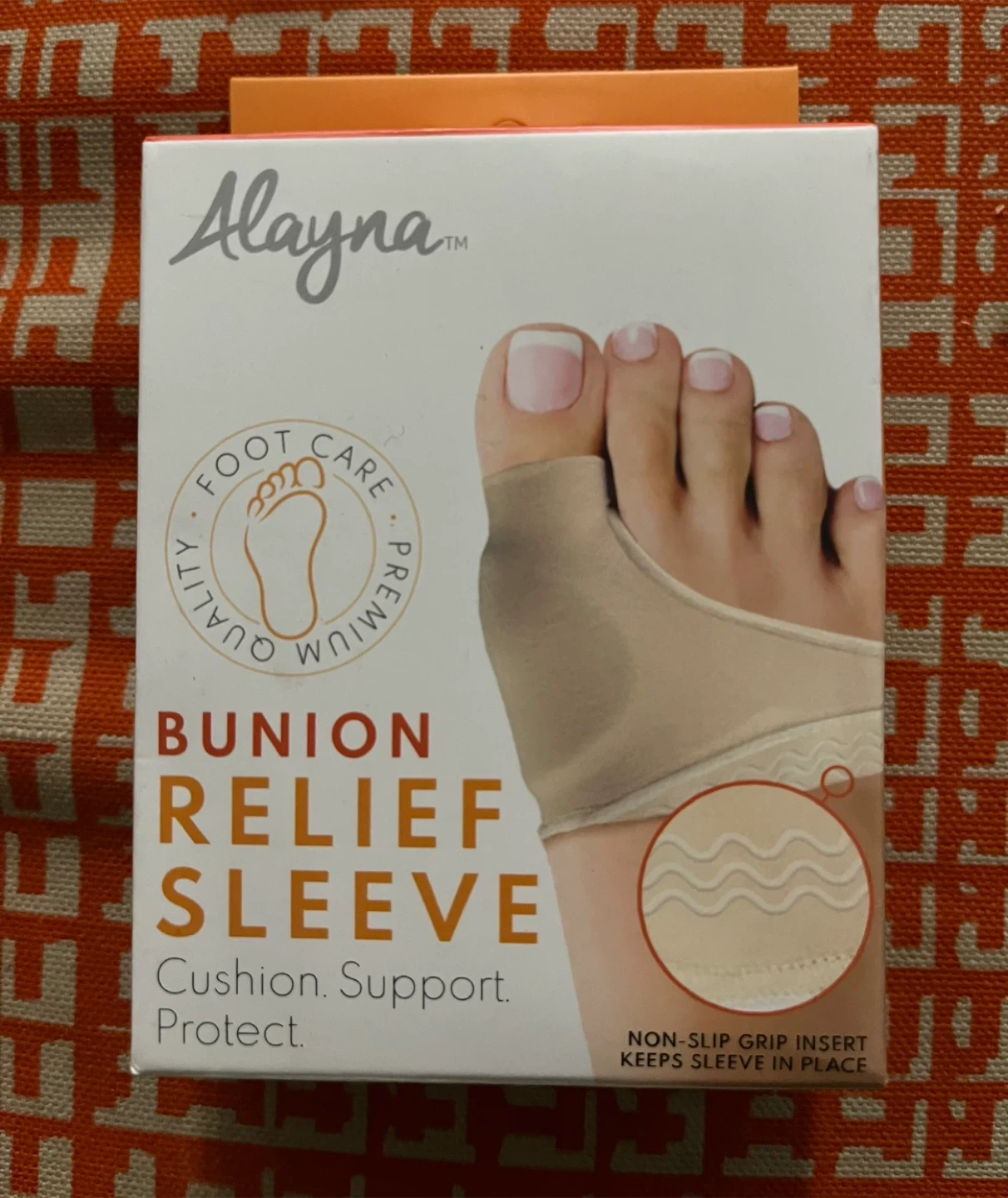 This Alayna bunion relief sleeve is designed for cushion, support, and protection. It's made of flexible and breathable material with a medical grade gel cushion. The sleeve is washable and air dry for optimal repetitive usage.