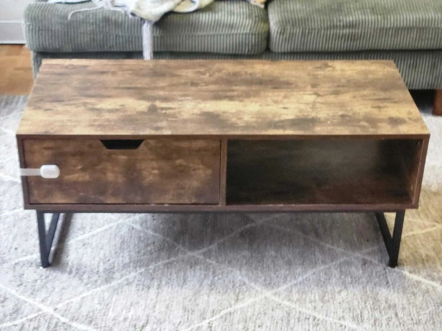 This coffee table features a drawer and open storage shelf, perfect for storing books, magazines, or remotes.