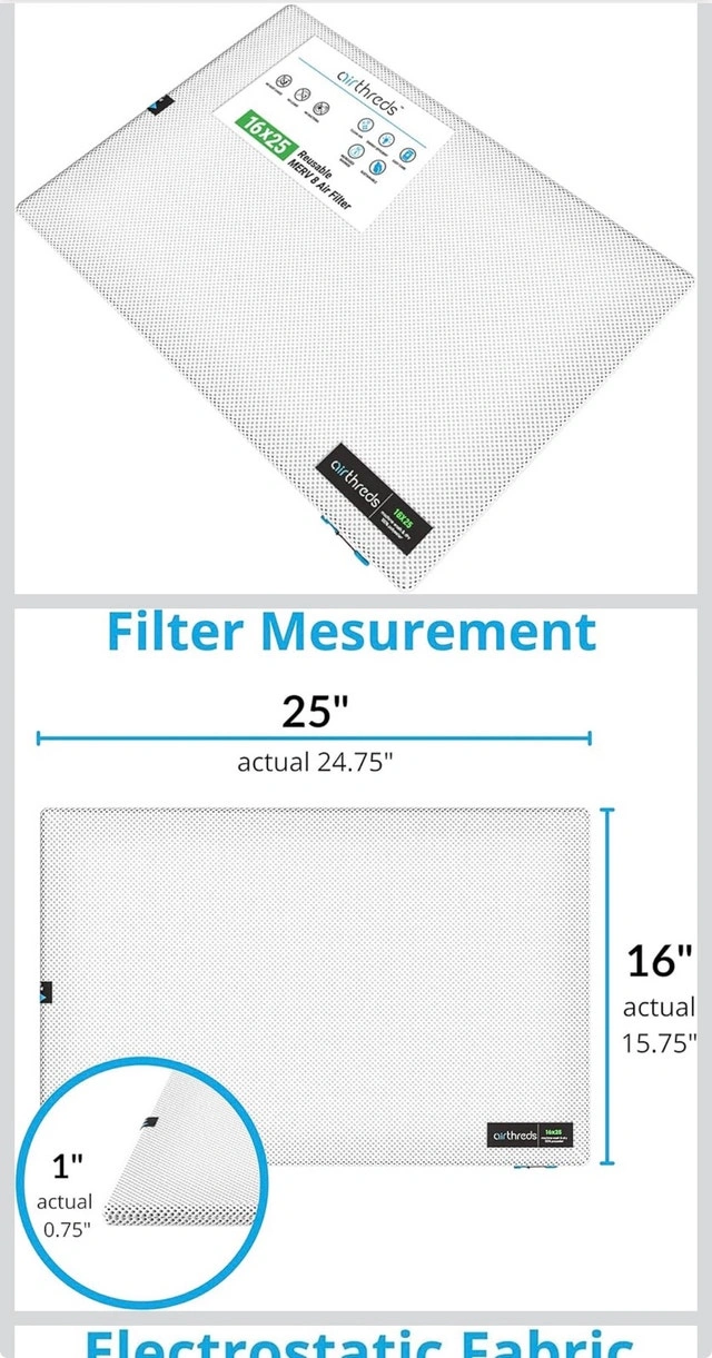 Airthreads Air Filter 16x25X1 - Machine Washable