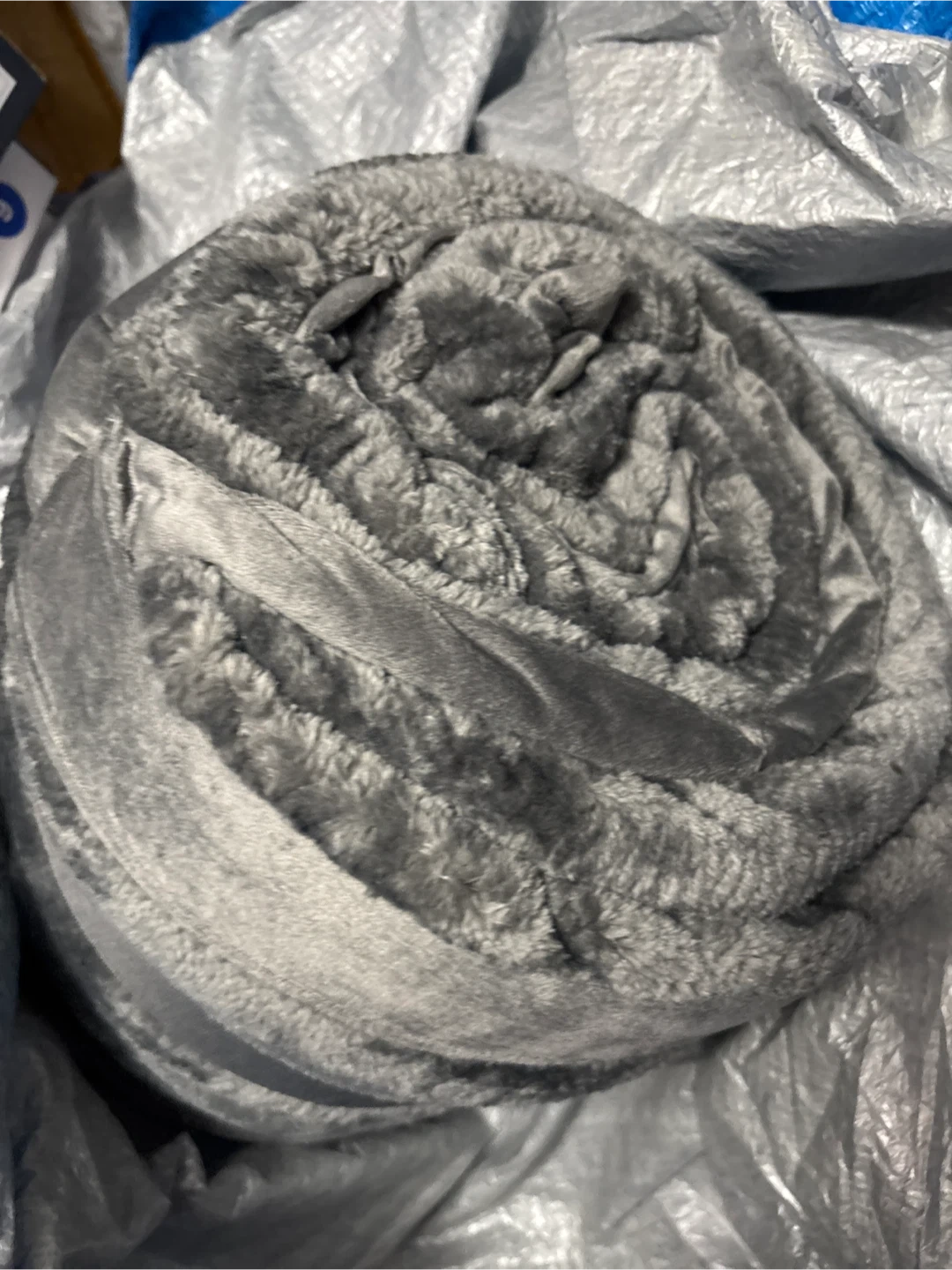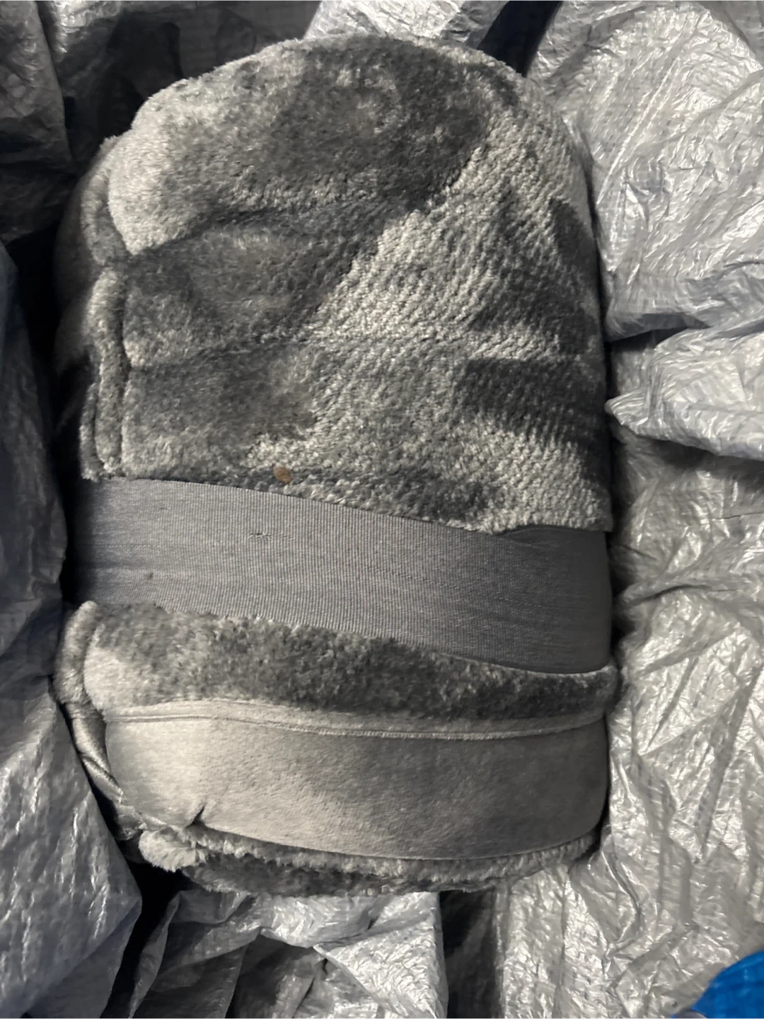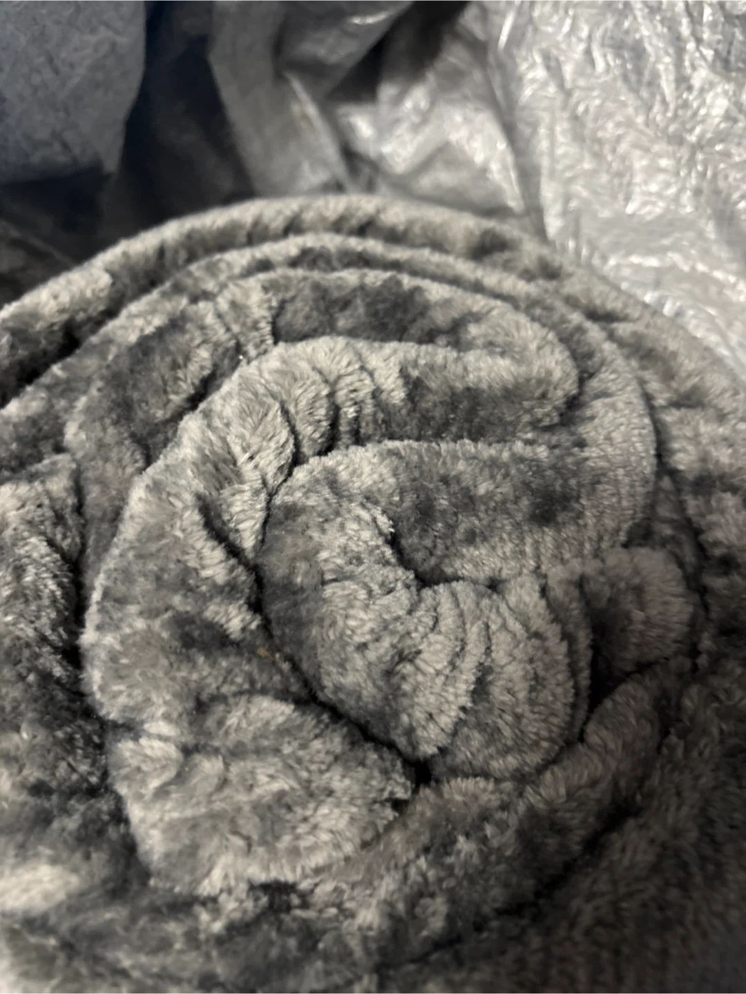 Cozy grey plush throw blanket, perfect for chilly evenings. It's soft and warm. Wonderful for adding extra comfort to your couch or bed.