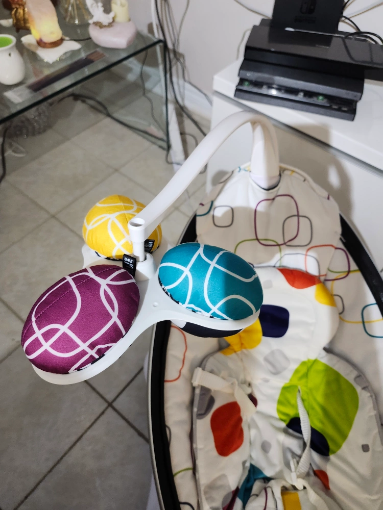 This is a gently used mamaRoo 4 baby swing. It is in excellent condition and comes with all of the original accessories. It features 5 different speeds and 5 different motions. It is easy to assemble and use, and will provide hours of entertainment for your baby. It is also very easy to clean. This is a great product for any parent.