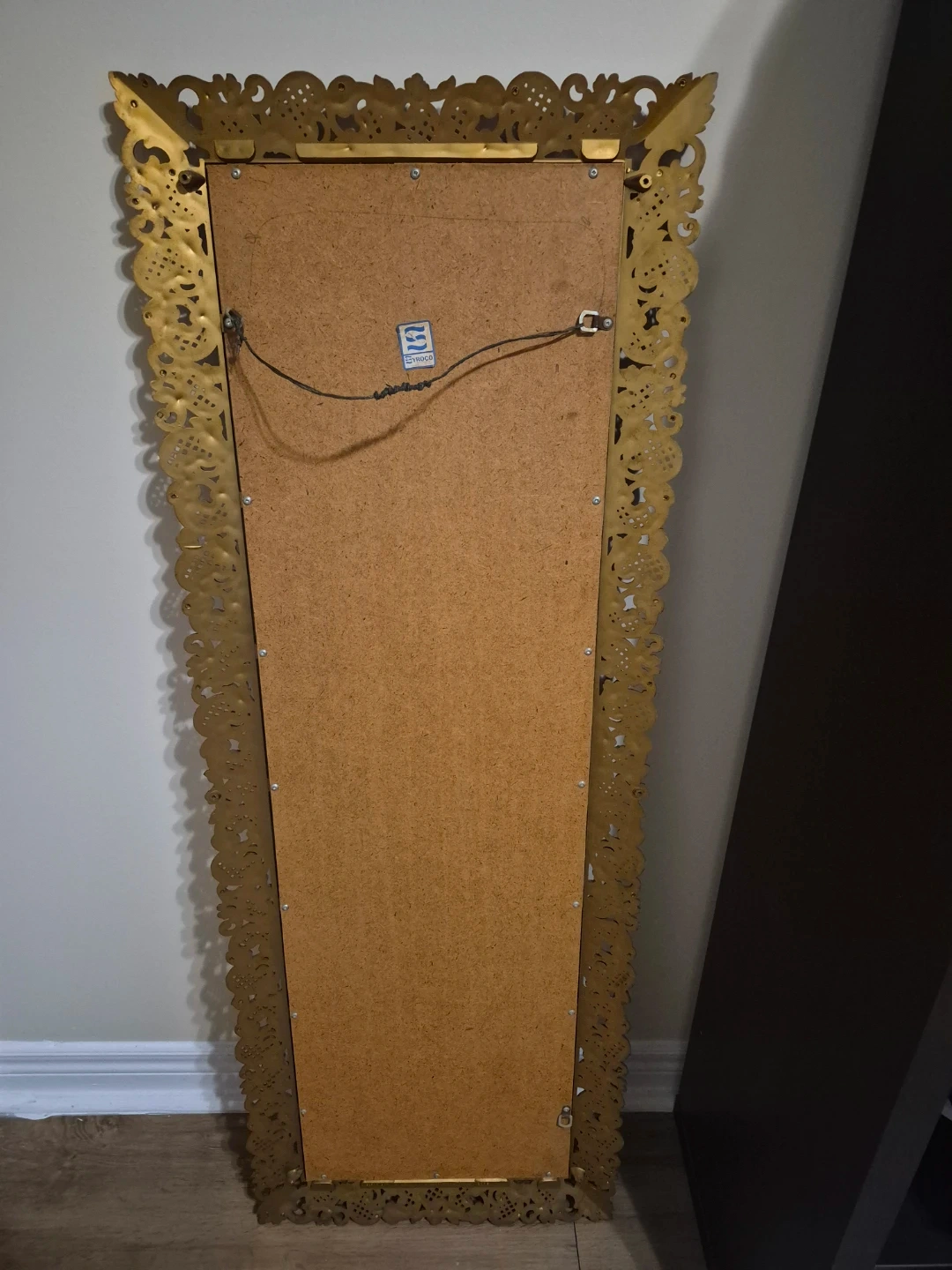 Selling a beautiful ornate mirror with a gold-coloured frame. It would look lovely in any room and add a touch of elegance to your home. The frame has a detailed, decorative design. It's in great condition!