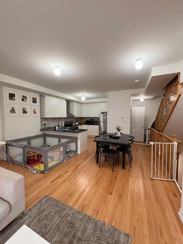 Newly built 3 years home for rent. 3 bedrooms with 2.5 washrooms and 2 balconies. Ground, main floor, and upper hallway have hardwood flooring and oak stairs. Big kitchen with a dining area and big windows for natural light. Open concept, great for family entertaining. Main intersection: Salem & Hwy 401 (off Lord Drive). Close to 401, schools, shopping, Costco, Durham Transit, and Ajax GO. Also only a few minutes from Ajax Waterfront Park. Lease includes use of stainless steel appliances (fridge, stove & hood, built-in dishwasher), washer, dryer, light fixtures, and backsplash in kitchen. Rent amount: $2750 monthly + utilities (hydro, gas, and hot water tank). Basement has a laundry room and cold storage. Parking spaces: 2. Occupancy available from May 15th, 2026. Lease term: 1 year. Smoking permitted outdoors only. Air conditioning: Yes. Unit type: Townhouse. Pet friendly: No. Move-in date: May 15, 2026. Bedrooms: 3. Bathrooms: 2.5. Balcony: Yes. Size: 1550 sqft . For rent by owner.