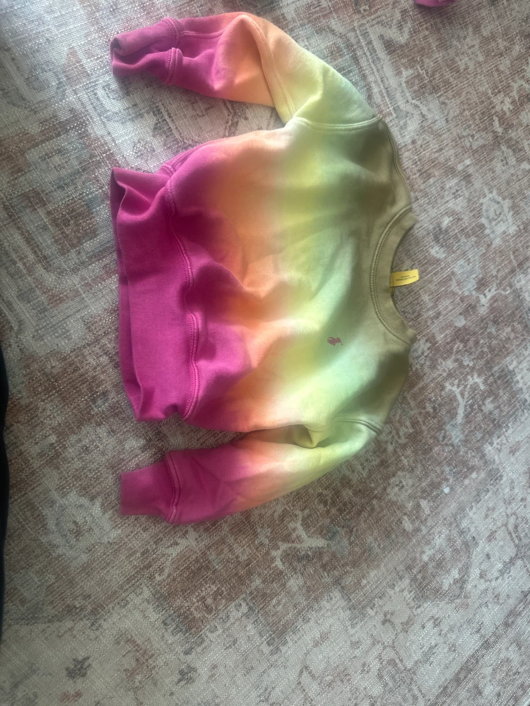 Sweaters 4T bundle featuring a pink Nike zip-up hoodie, an Adidas all-over print crewneck sweatshirt, and a colourful tie-dye crewneck shirt. These pieces are perfect for mixing and matching your little one's wardrobe.