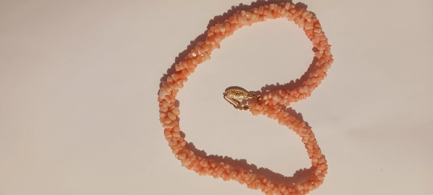 Natural Pink Salmon Coral Beaded Necklace with Gold Tone Clasp