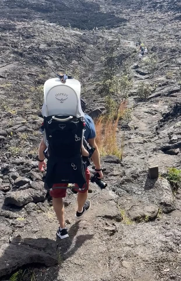 The Osprey Poco Plus is a top-tier hiking child carrier designed for children from 6 months to 4 years (up to 48.5 lbs total weight). Key features include a built-in UPF 50+ sunshade, 26L of storage, a stable aluminum frame, and an adjustable, ventilated back panel for comfort. It includes a secure "halo" harness, stirrups, and a drool pad. Comes with carry case. No returns. From smoke pet free home. eTransfer ok.