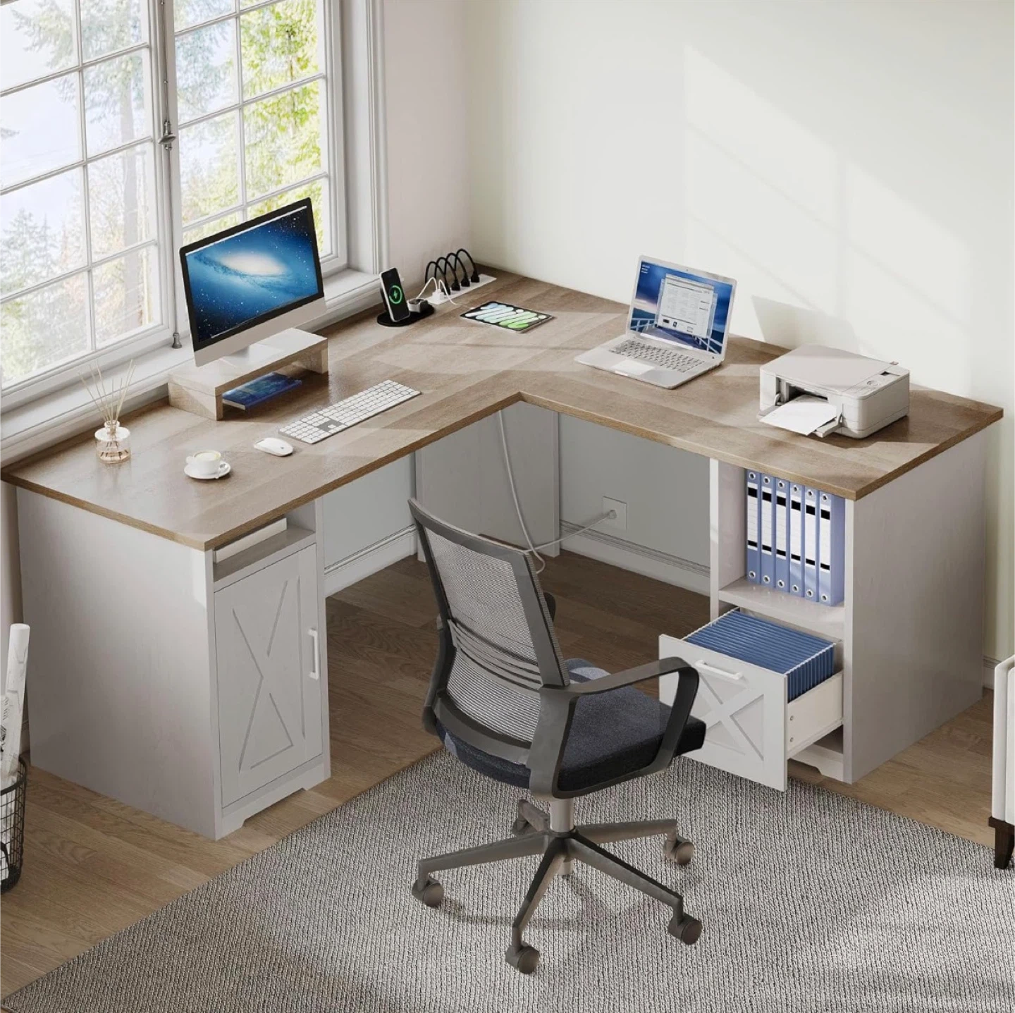 L-Shaped Corner Desk with Storage