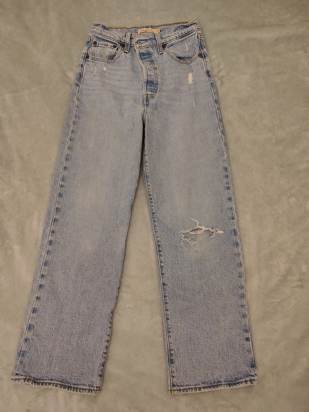 Levi's Ribcage Straight Ankle jeans in a light wash. These jeans are size 26. They have a button-fly closure and distressed details. Didn't fit me and missed return window. New 😭