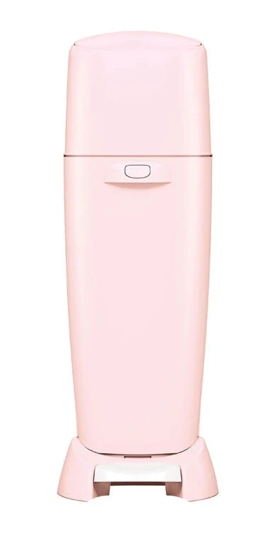 Angelcare baby diaper pail in pink. It's a convenient solution for managing diaper odours. The pail's unique sealing system locks away smells.