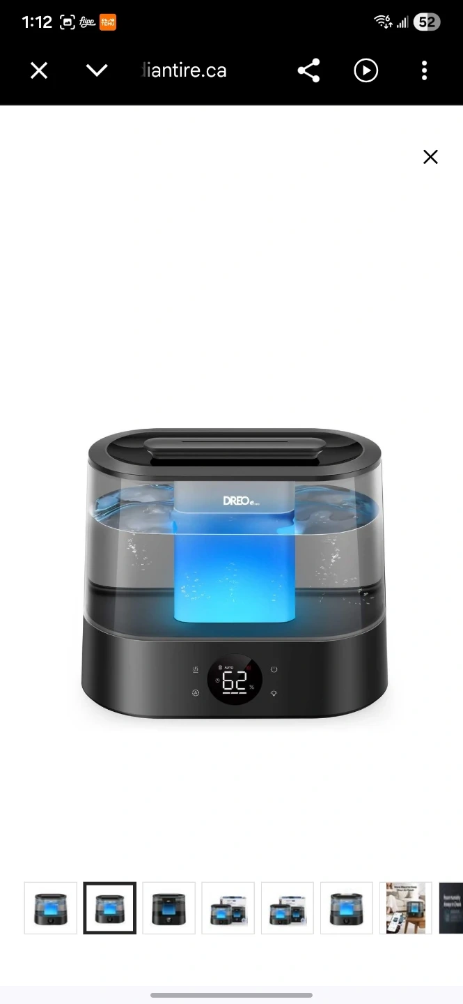 This Dreo Home humidifier offers elevated mist and widespread comfort. It's a 4-liter capacity unit with a 30" tiltable nozzle. It displays humidity levels and features auto mode.