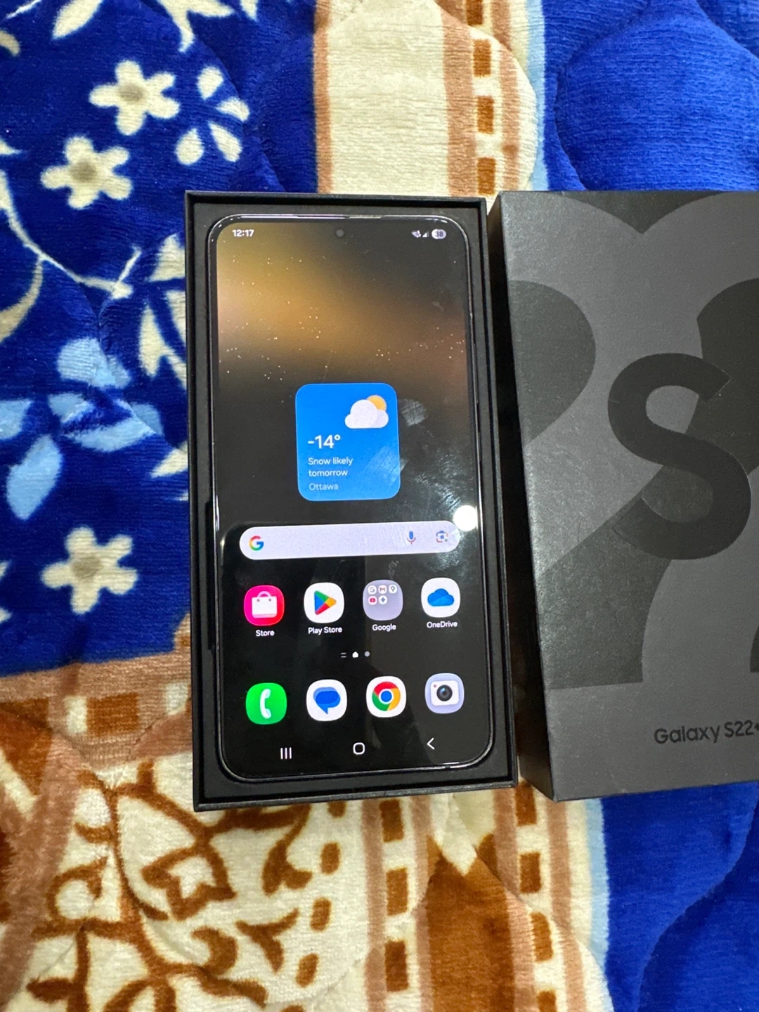 Buy & SellSamsung Galaxy S22+ SmartphoneSamsung Galaxy S22+ Smartphone$325Samsung Galaxy S22+ smartphone in black. It's in the original box. This device offers advanced camera capabilities and a vibrant display.ConditionLike newBrandSamsungWHERE TO MEETCheck LocationView MapSELLERverifiedAtifLisgar14213 reviews3 chats·3 favorites·112 viewsSEND CHAT TO SELLERHi Atif! I’m interested in your listing.Hi Atif! I’m interested in your listing.Get the Karrot app to chatSign In to chat