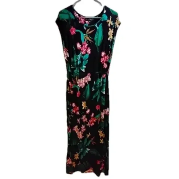 This is a lovely floral maxi dress from Dorothy Perkins. It's a size US 6 (EUR 38, UK 10) and is made in Bangladesh. The dress features a beautiful floral pattern on a black background, perfect for a casual or semi-formal occasion