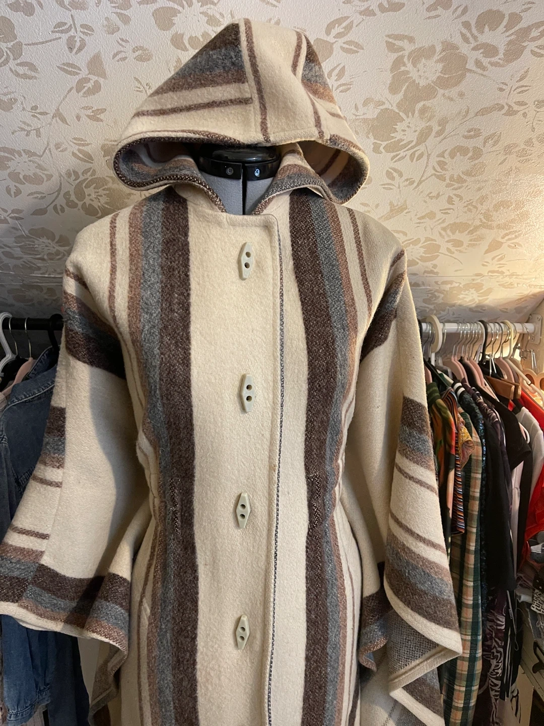 ✨ Hooded poncho-style silhouette