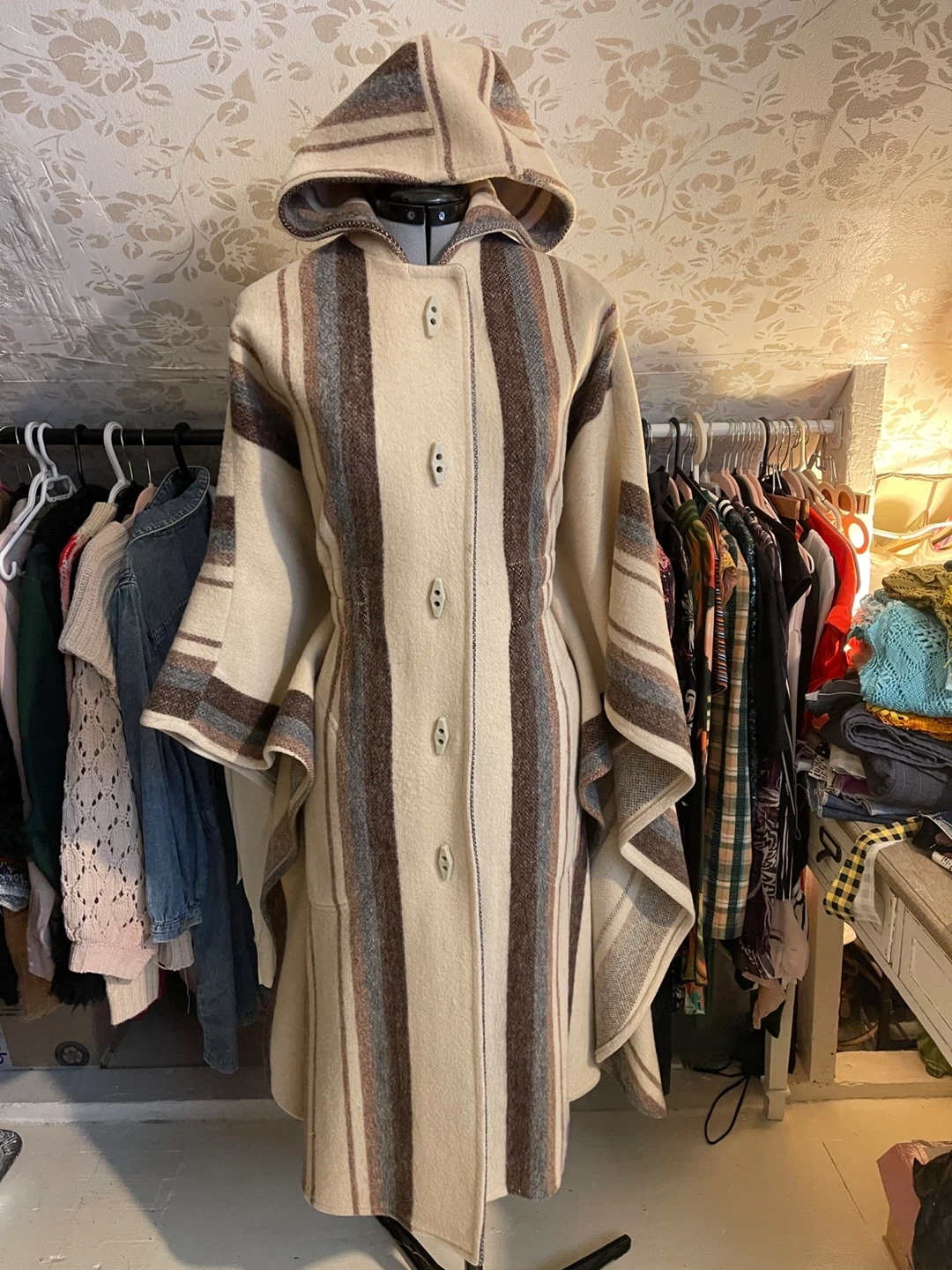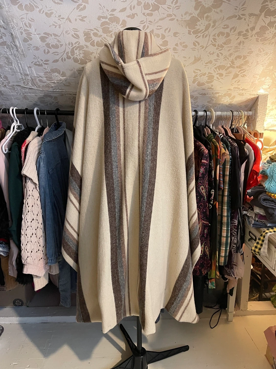 ✨ Hooded poncho-style silhouette
