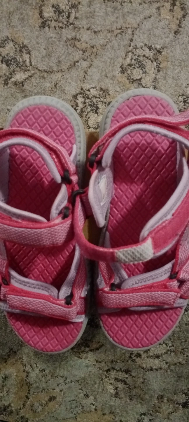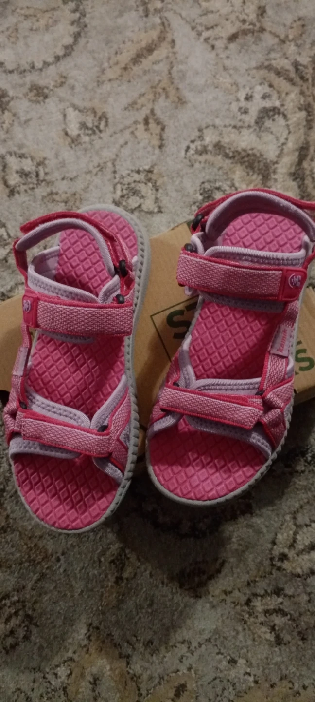 Kamik girls' sandals in a fun pink and grey colourway. Features adjustable straps for a secure fit. These are a US size 2, EU 34, UK 1.5. Perfect for summer adventures!