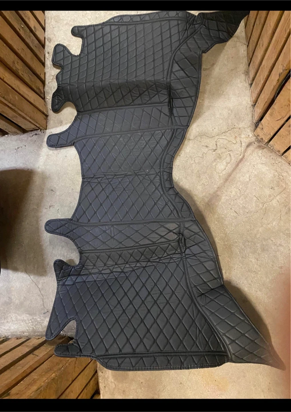 These are black quilted floor mats designed for car Dodge Ram 1500 classic. They're made from durable material and have a diamond stitch pattern. This set covers the floor area to protect your vehicle's interior. New, waterproof, never used.