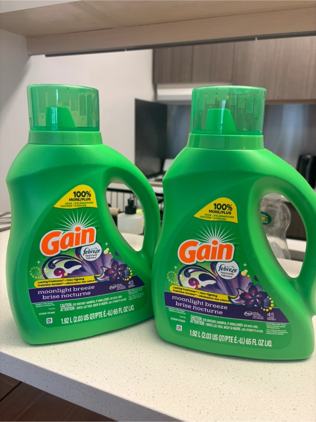 TWO unopened (new) bottles of Gain liquid laundry detergent.