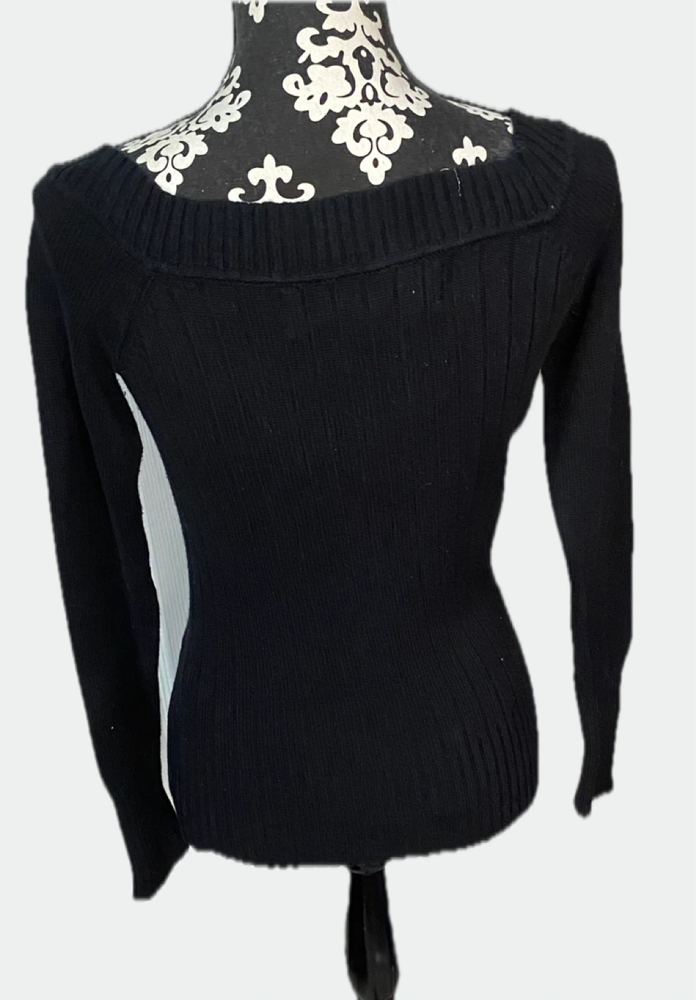 A simple black long-sleeve sweater with a V-neck cut. Perfect for layering or wearing on its own!