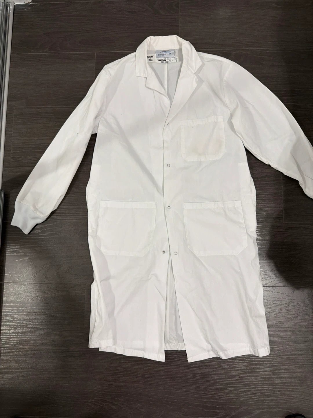 White lab coat . Features multiple pockets and button closure. Great for lab work or science projects! Pick up two minutes away from Square one mall