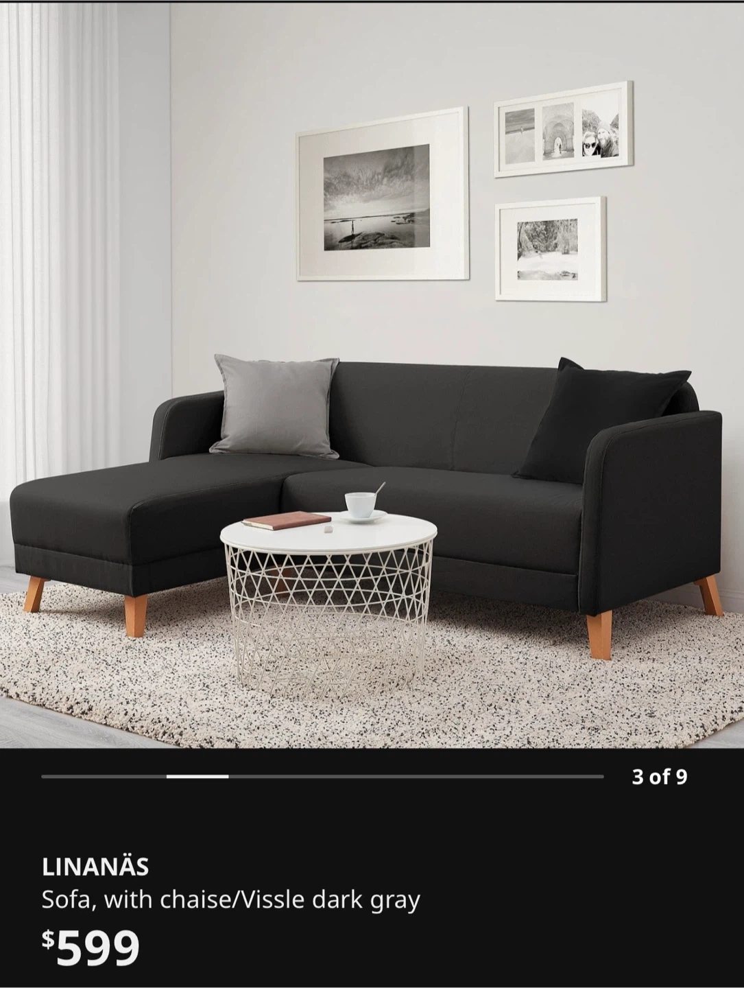 IKEA LINANÄS Dark Grey Sectional Sofa