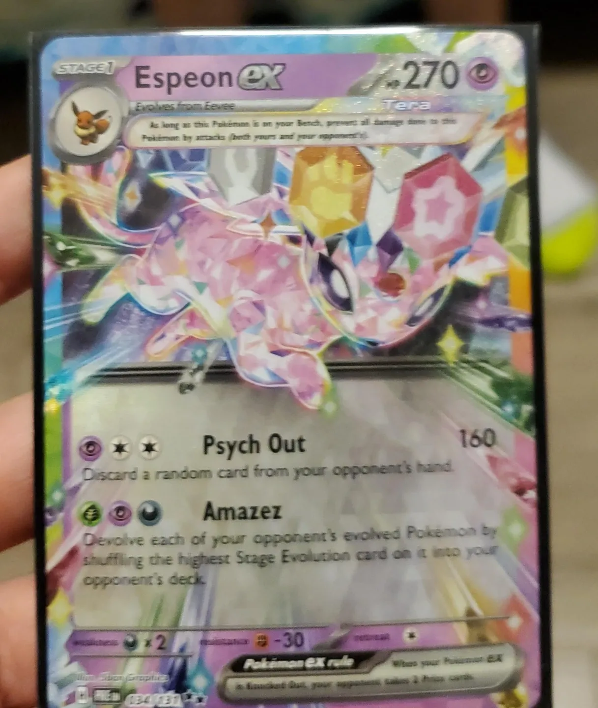 Buy & SellEspeon EX Pokemon CardEspeon EX Pokemon Card$62This is a Stage 1 Espeon EX Pokémon card. It evolves from Eevee and has 270 HP. Its attacks are Psych Out and Amazez.WHERE TO MEETCheck LocationView MapSELLERTonaldJill Crescent150 reviews0 chats·0 favorites·19 viewsSEND CHAT TO SELLERHi Tonald! I’m interested in your listing.Hi Tonald! I’m interested in your listing.Get the Karrot app to chatSign In to chat